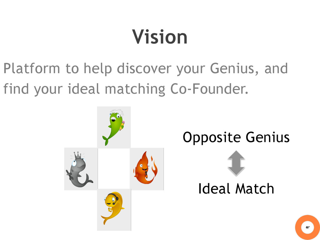 Discover your Genius. Find your Co-Founder. Sharing the pitch deck for creating an online platform to help discover your Genius, and find your ideal matching Co-Founder.