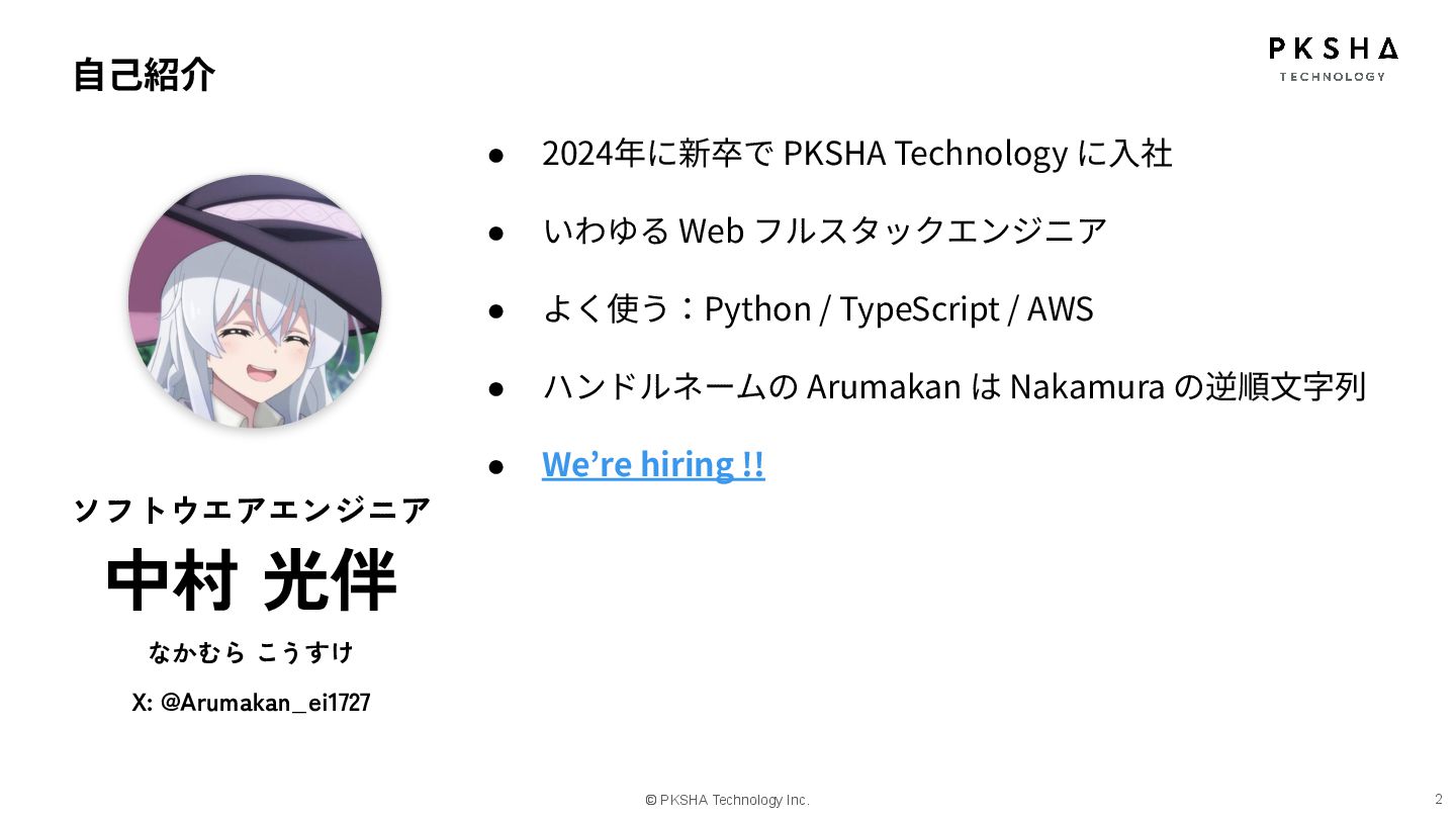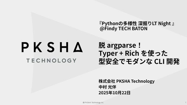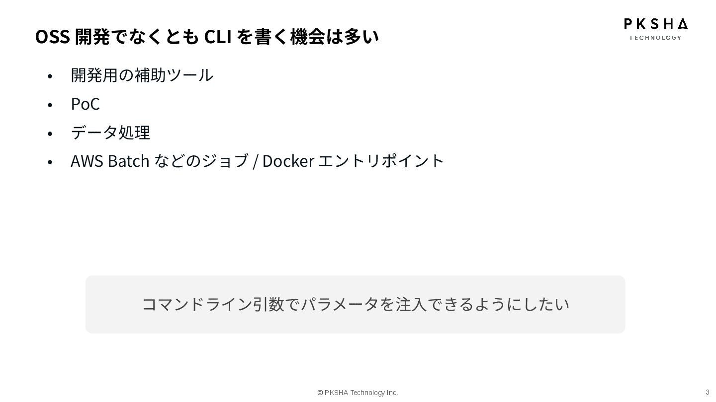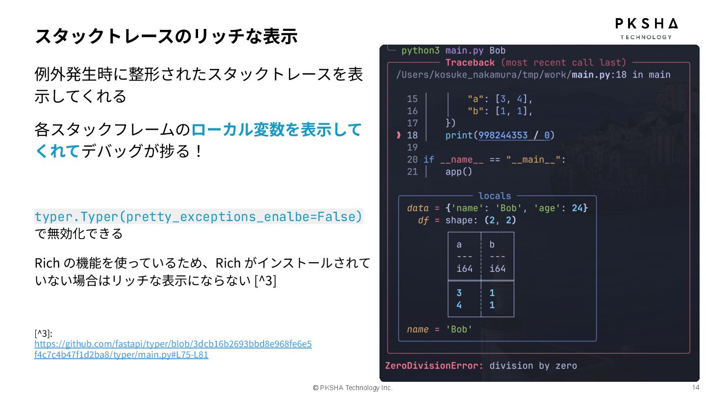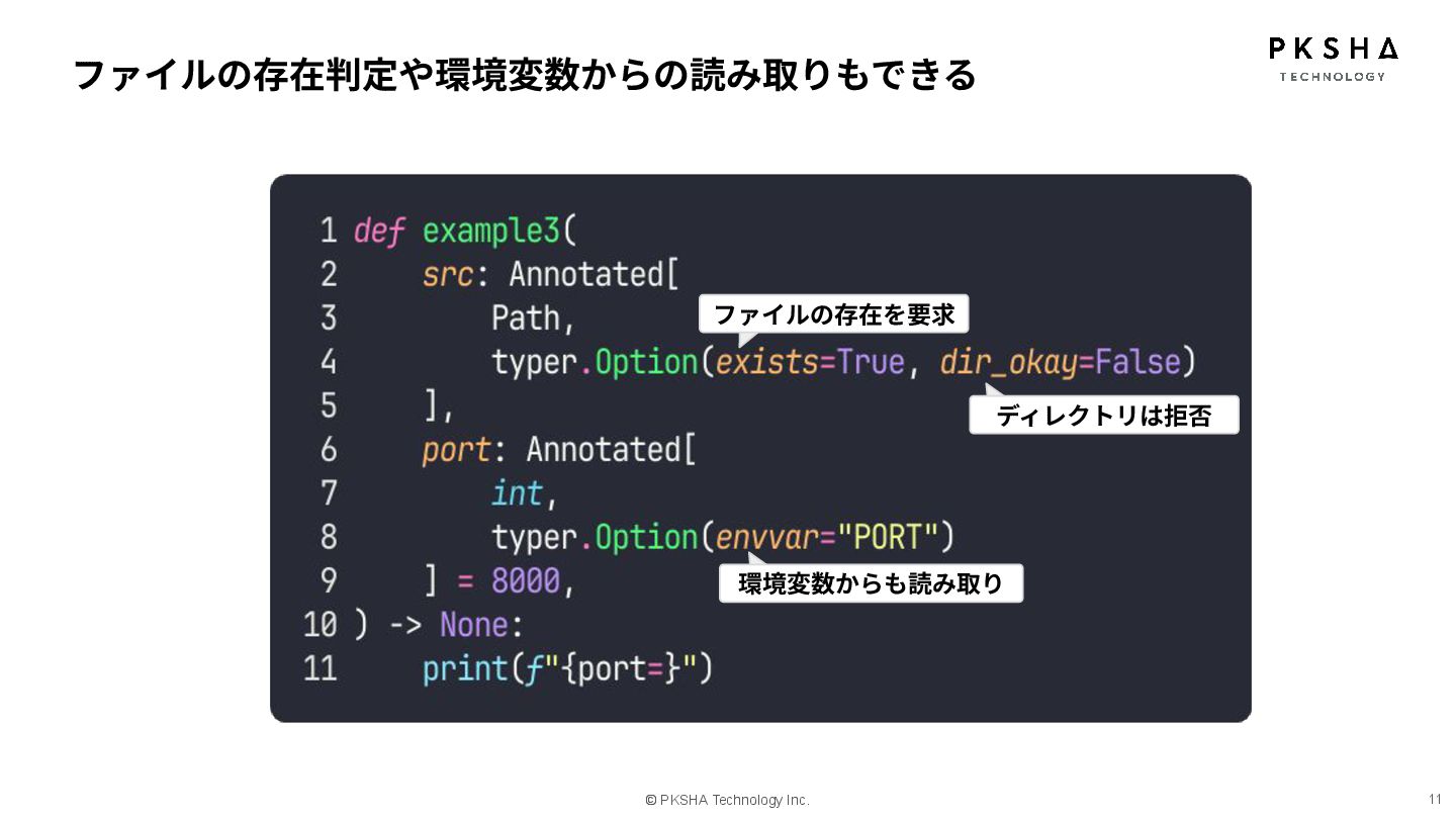 typer-slim というライブラリ pip install typer を実⾏すると typer-slim, rich, shellingham, typer コマンドが⼊る ※shellingham はカレントシェルの検出をするパッケージ 15 インストールコマンド typer-slim (Typerのコア) rich, shellingham typer コマンド pip install typer ✅ ✅ ✅ pip install typer-slim ✅ pip install ‘typer-slim[standard]’ ✅ ✅ 出典: https://typer.tiangolo.com/#typer-slim