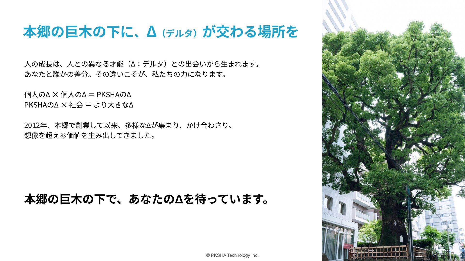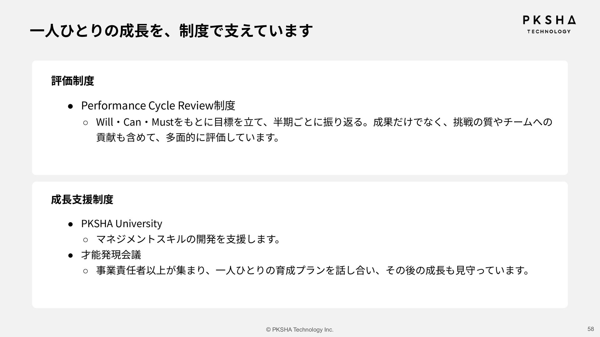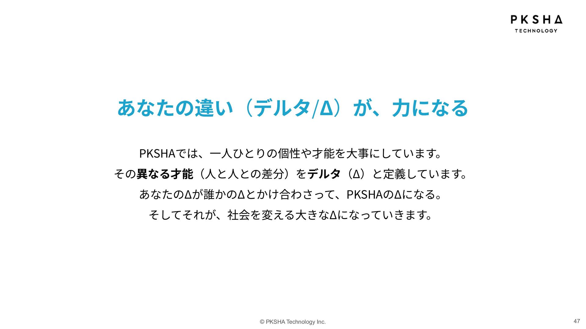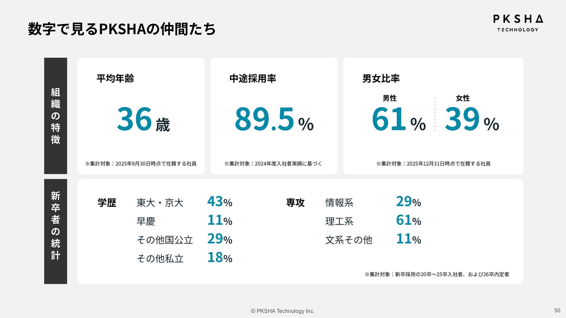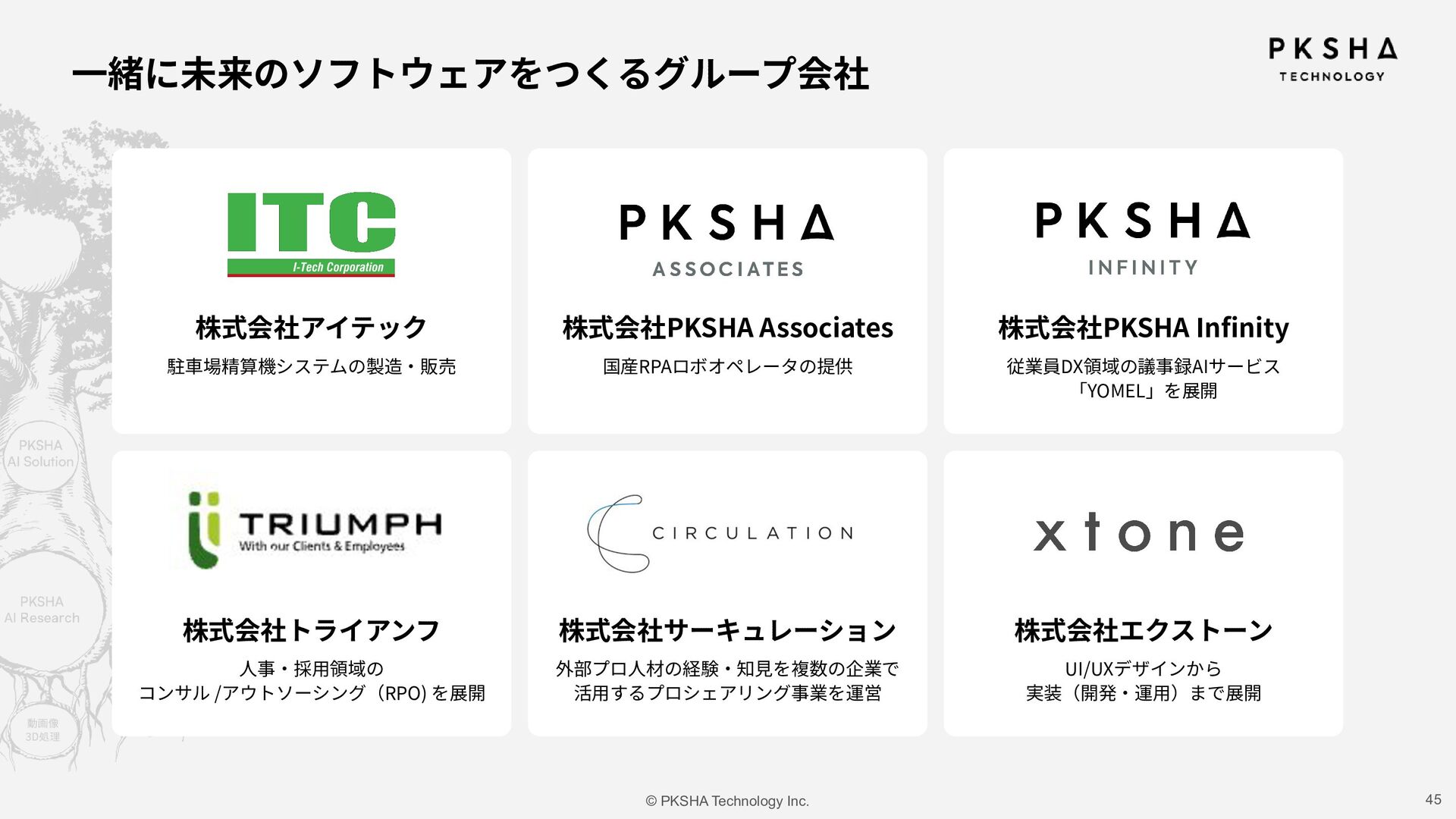 SaaS ⽣まれた技術を、誰もが使えるプロダクトに AI Research & Solution まだない技術や体験を、研究の⼒でかたちに 事業 カンパニー制度 AI Knowledge & Communication カンパニー AI Native カンパニー AI Research & Soution カンパニー Physical AI カンパニー AI HR カンパニー AIの未来を5つのカンパニーで切り拓き、 次世代の経営リーダーを⽣み出していく。