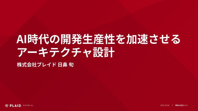 © PLAID, Inc. 2025..07.03 | 開発生産性Conf AI時代の開発⽣産性を加速させる アーキテクチャ設計 株式会社プレイド ⽇⿐ 旬 ©