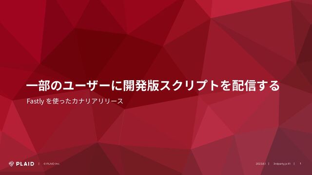 | © PLAID Inc. 2023.8.1 | 3rdparty.js #1 | 1 ⼀部のユーザーに開発版スクリプトを配信する Fastly を使ったカナリアリリース