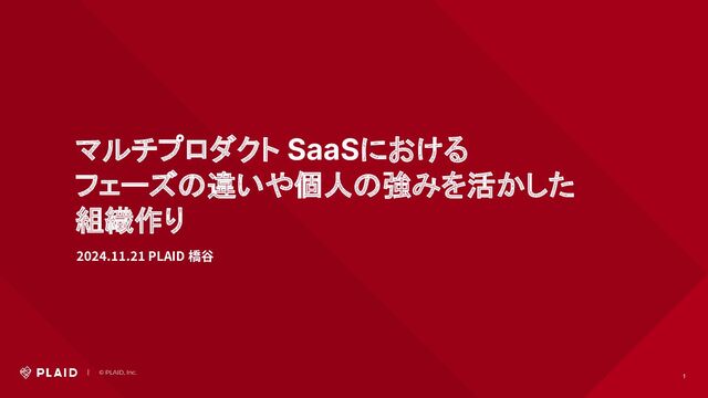 2024年11月21日に開催された「ホリゾンタル×バーティカルSaaSのPdMが明かす 成長を続けるプロダクトのベストプラクティス」における発表資料です。 イベントページ : https://chatwork.connpass.com/event/335334/ 登壇者 : 株式会社プレイド 橋谷潤子