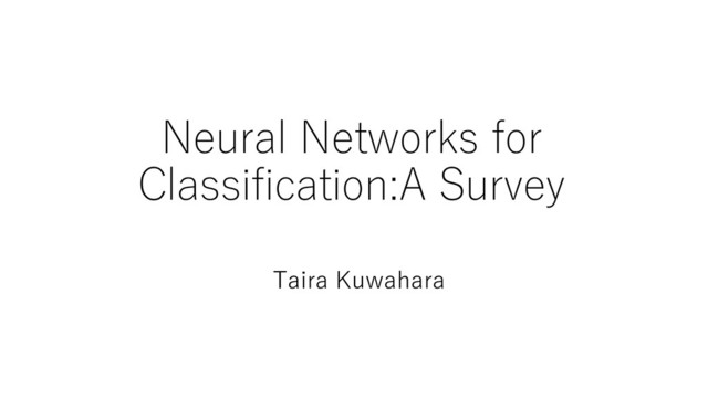 はじめに ※このスライドはNeural Networks for Classification:A Surveyを読み、まとめたもので す。 URLは最後のページの参考⽂献にて 2
