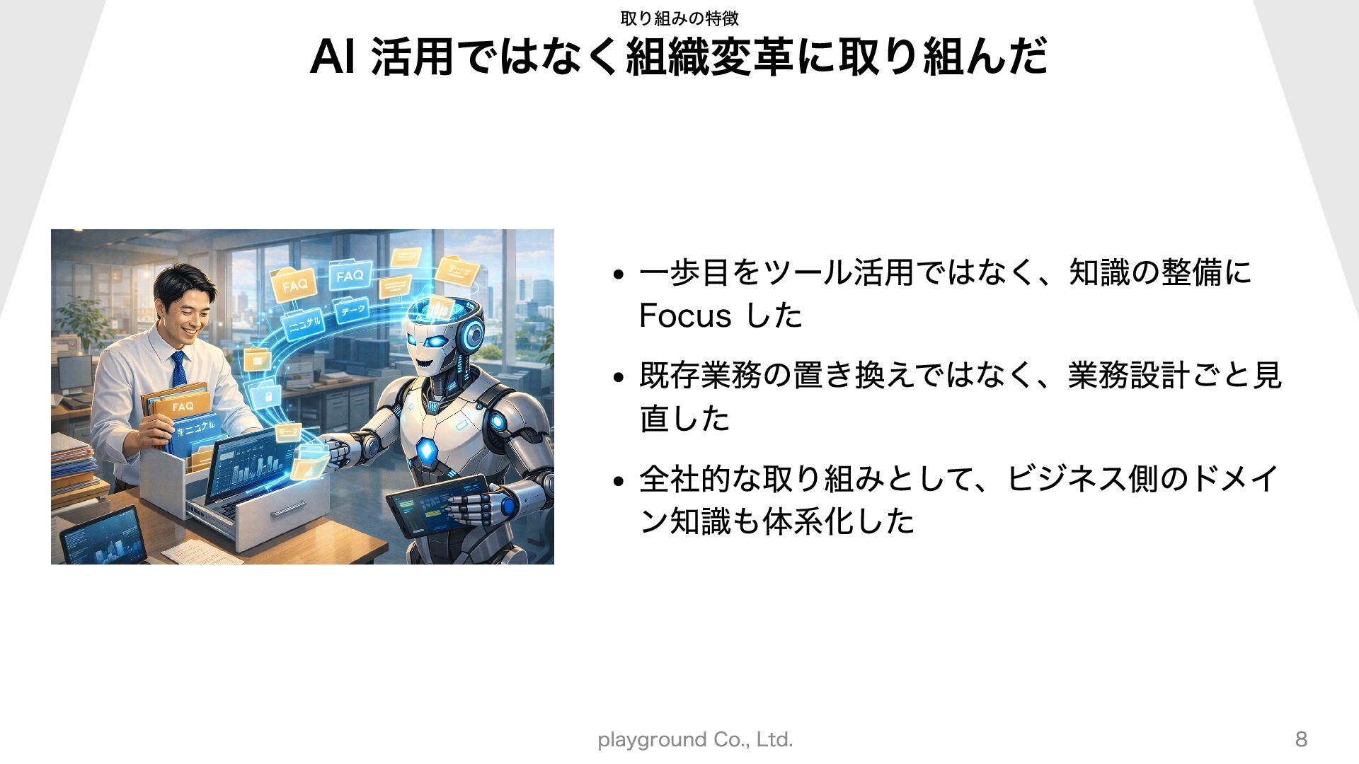 #目次 - 自己紹介 - 会社紹介 - 取り組むと成果 - 振り返り