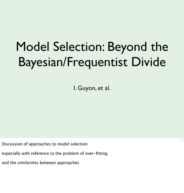 doing model selection Models Inductive Bias All Models 4 most model selection methods still have a hyper-parameter that’s optimized through cross- validation so, even in the principled Bayesian method of averaging over posteriors, or minimizing performance bounds, we use cross-validation