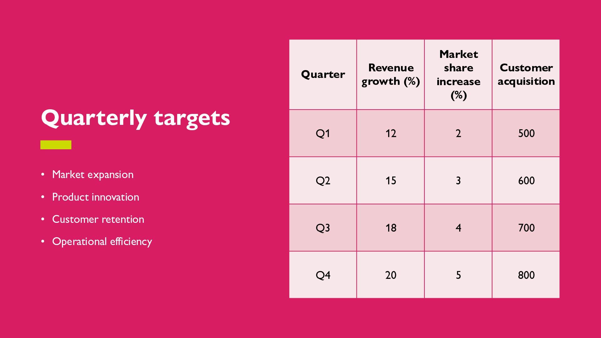 testing Q2 Product launch • Currently gearing up for a ground- breaking launch • Our new offerings will captivate the market • Our marketing campaign will generate anticipation