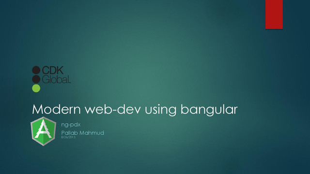 Data: POJO o Extend HTML o Writing test o Community size/ meet-ups o Dependency injection o Angular 2.0 o Typescript: Elegance o Modular: Pick your modules o Modern: ES6, Green browsers o No $scope o Mobile First – Performance, Speed o 5x Faster – utilizing web workers http://bit.ly/1fb35ca