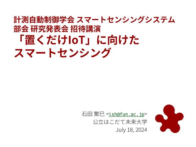 [SICE-SSS202407] (招待講演) 「置くだけIoT」に向けたスマートセンシング / Smart Sensing Toward Put-and-Play IoT System