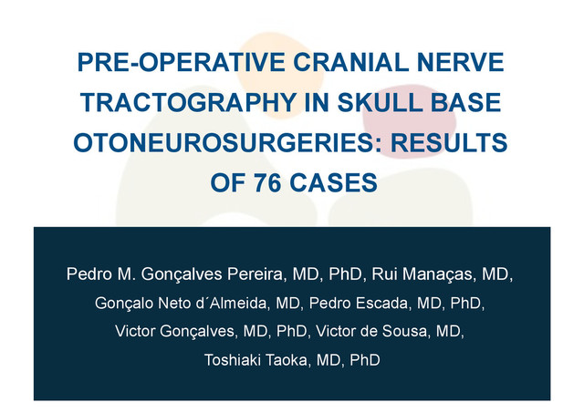 entre observadores(**) (**) Gonçalves Pereira PM et al Pre-Operative Tractography of the vestibular Schwannomas: Inter-Observer Agreement with Surgical Findings. Insights into Imaging 4, 2013 Planeamento cirurgico Reduz o risco cirurgico e o tempo de cirurgia