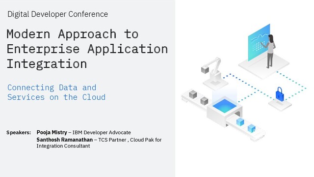 TCS Partner , Cloud Pak for Integration Consultant Digital Developer Conference Modern Approach to Enterprise Application Integration Connecting Data and Services on the Cloud Use this cutout for a speaker video thumbnail. Delete if not using