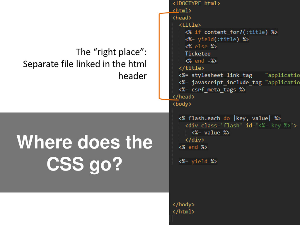 Where does the CSS go? The “right place”: Separate file