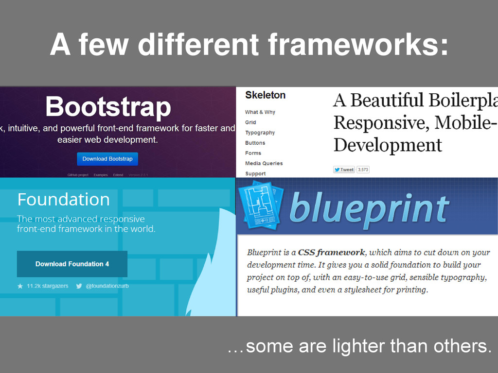 A few different frameworks: …some are lighter than others.