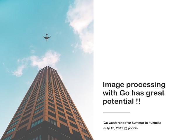 Go Conference'19 Summer in Fukuoka での発表資料です。Goによる画像自動生成サービスを作った経験から、Goで一歩進んだ画像処理を行う方法についてお話します。画像やテキストの合成に関して知っておくべき用語やエッセンスから、任意の画像処理アルゴリズムを標準パッケージで実装する際の知見や、Go+OpenCVを使った画像解析など、入門書だけでは体感できないような、Go+画像処理の可能性をお伝えします。