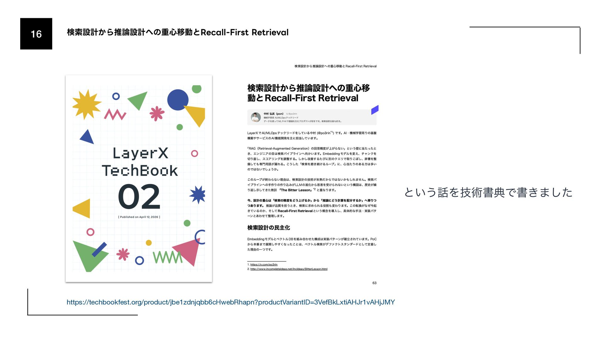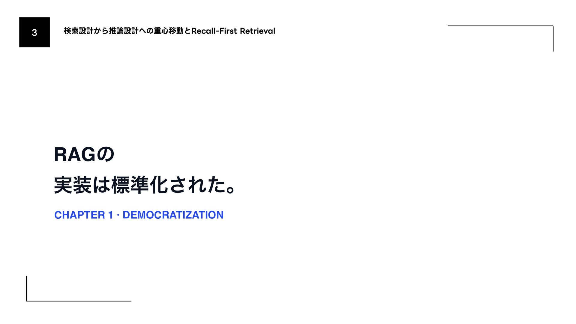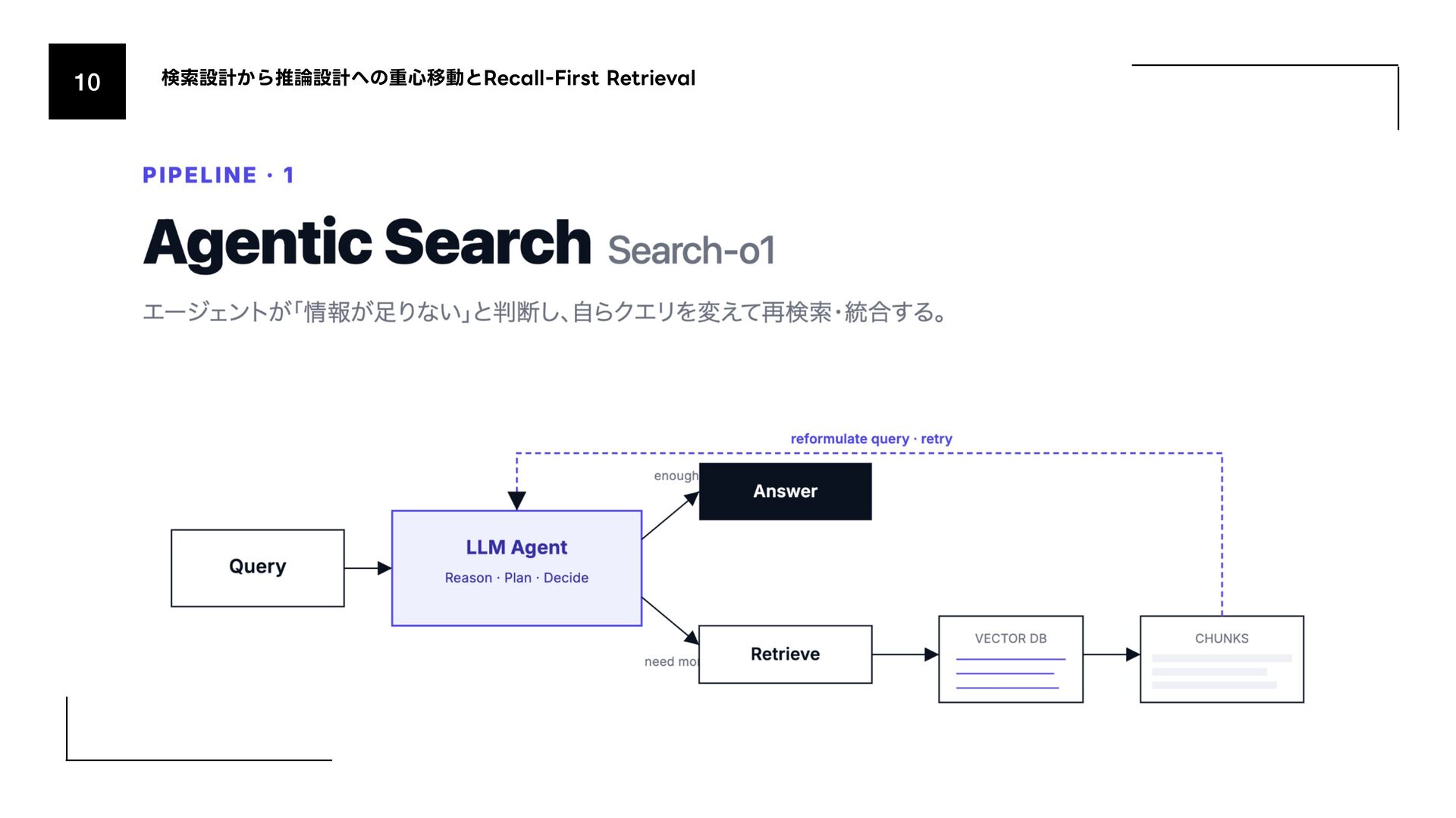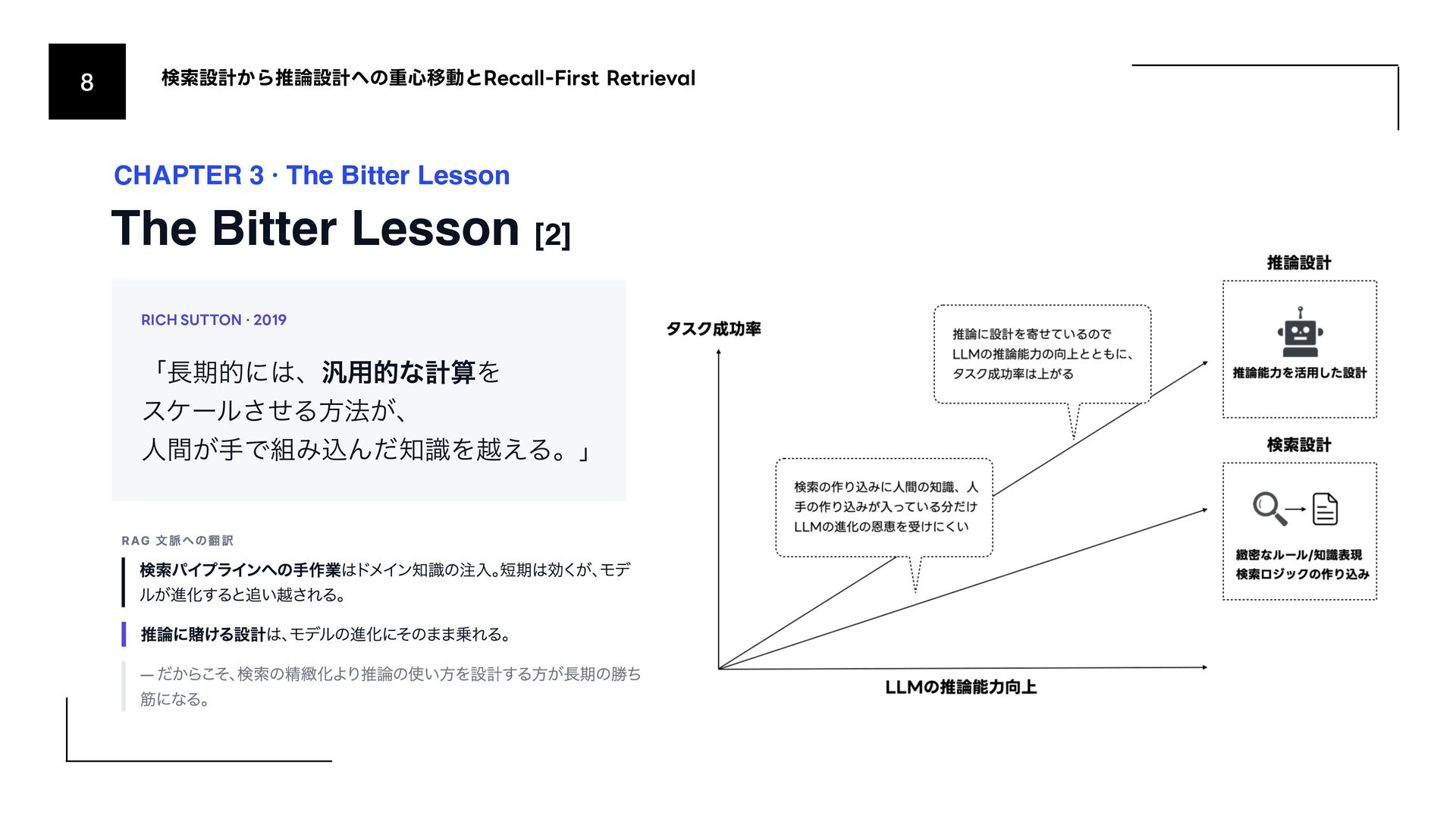 (AmazonͷݚڀνʔϜʹΑΔൃද) 1. URL: https://www.amazon.science/publications/keyword-search-is-all-you-need-achieving-rag-level-performance-without-vector-databases- using-agentic-tool-use 2. Bitter Lesson 1. http://incompleteideas.net/IncIdeas/BitterLesson.html 3. Search-o1 (Agentic Searchͷදతͳ࣮) 1. arXiv: https://arxiv.org/abs/2501.05366 4. SPD-RAG (Sub-agent Per Document RAG) 1. arXiv: https://arxiv.org/abs/2603.08329 5. PageIndex (Vectorless RAGͷ۩ମతͳ࣮) 1. URL: https://pageindex.ai/ 6. SRLM (Self-Re fl ective Program Search) 1. arXiv: https://arxiv.org/abs/2603.15653