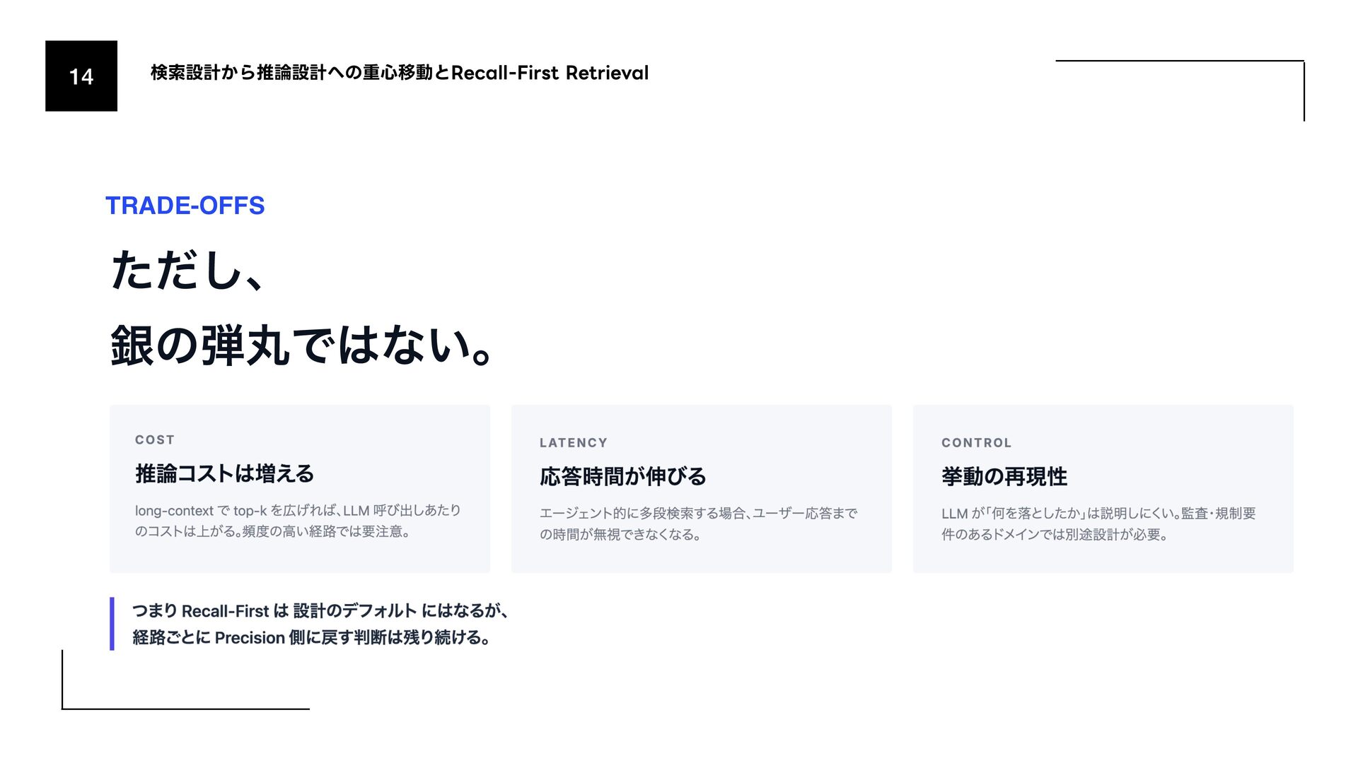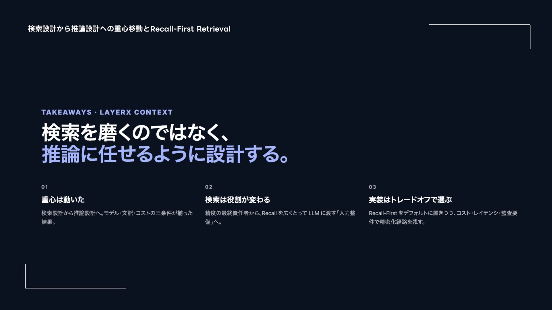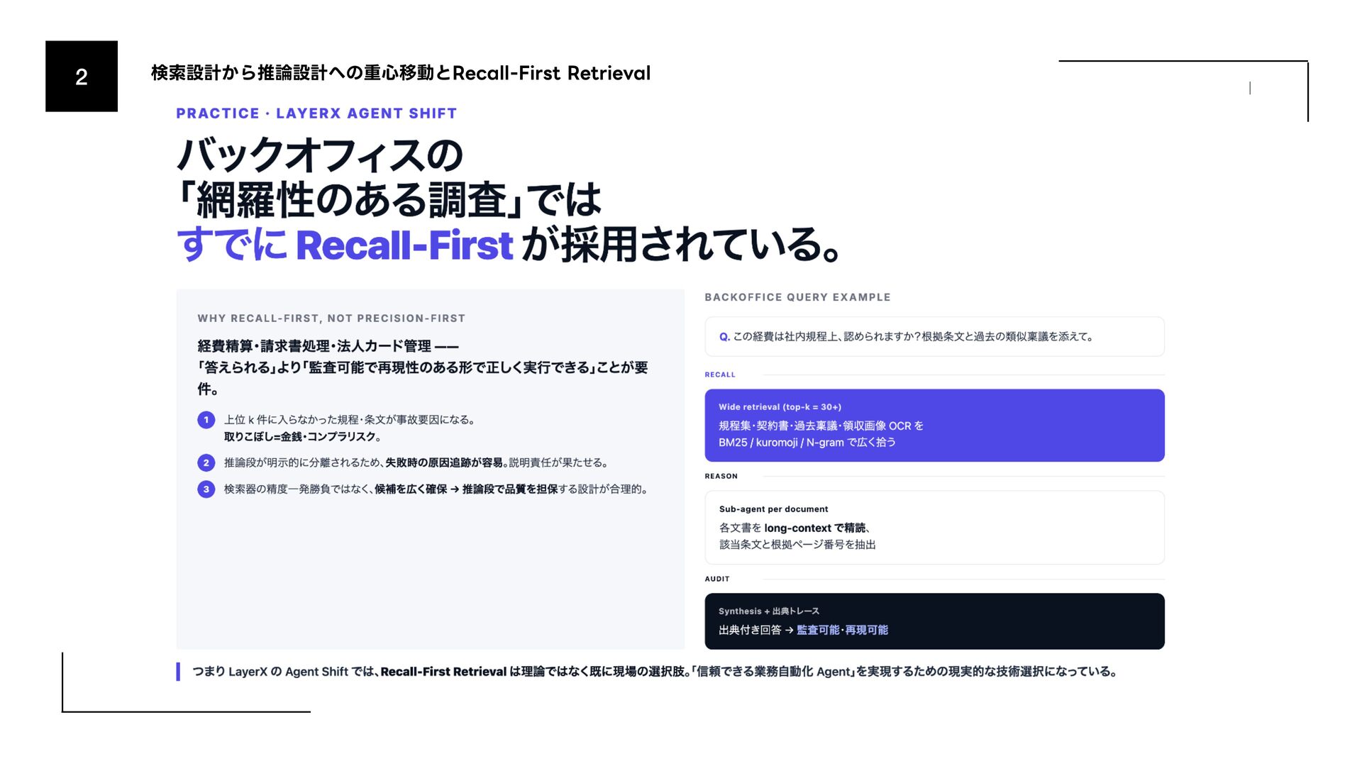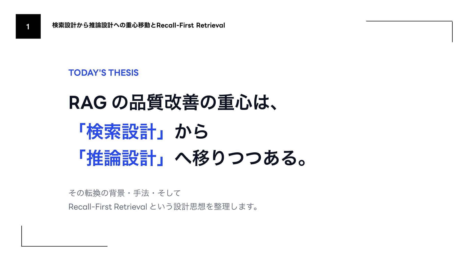 (AmazonͷݚڀνʔϜʹΑΔൃද) 1. URL: https://www.amazon.science/publications/keyword-search-is-all-you-need-achieving-rag-level-performance-without-vector-databases- using-agentic-tool-use 2. Bitter Lesson 1. http://incompleteideas.net/IncIdeas/BitterLesson.html 3. Search-o1 (Agentic Searchͷදతͳ࣮) 1. arXiv: https://arxiv.org/abs/2501.05366 4. SPD-RAG (Sub-agent Per Document RAG) 1. arXiv: https://arxiv.org/abs/2603.08329 5. PageIndex (Vectorless RAGͷ۩ମతͳ࣮) 1. URL: https://pageindex.ai/ 6. SRLM (Self-Re fl ective Program Search) 1. arXiv: https://arxiv.org/abs/2603.15653