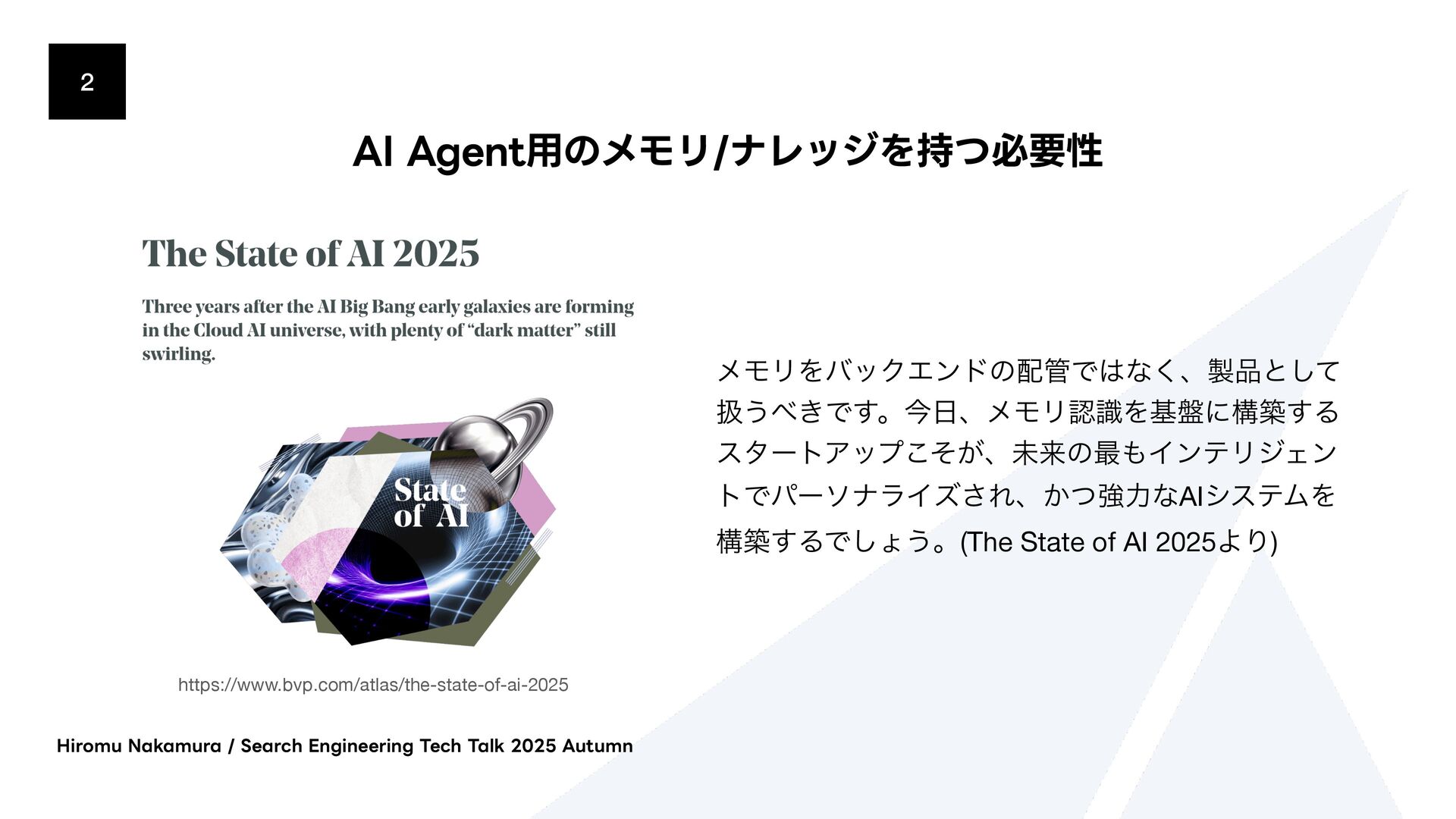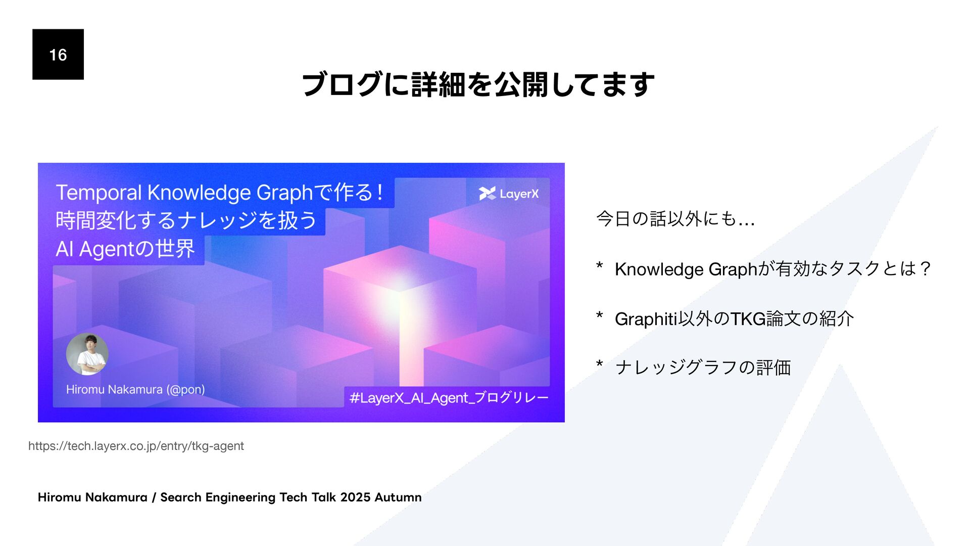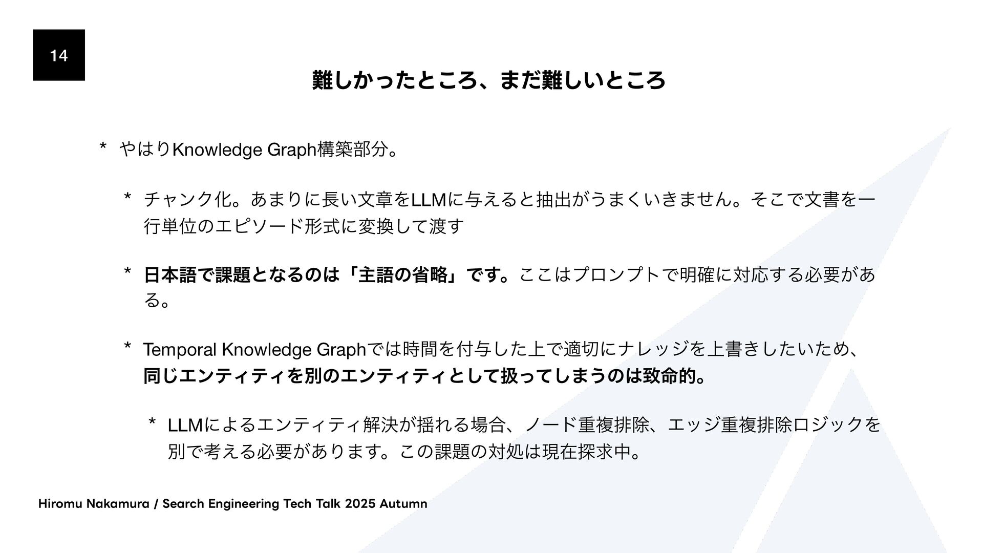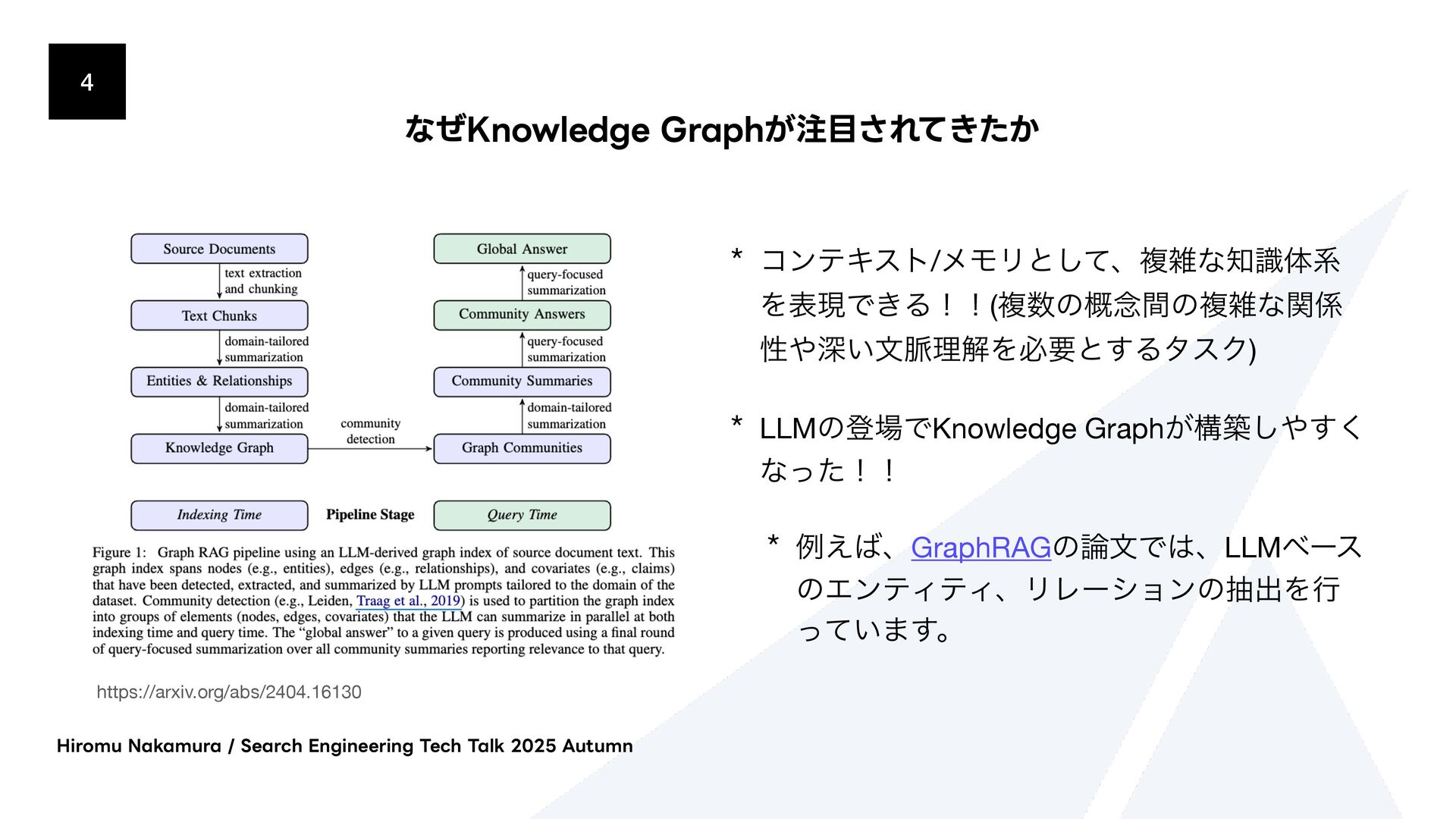 ΫΤϦςΩετ͕ຒΊࠐΈϕΫτϧʹม͞ΕɺίαΠϯྨࣅͰݕࡧ͞Ε·͢ɻ * 2. จࣈྻݕࡧ(BM25/Fulltext) * ಉ͡ΫΤϦςΩετ͕BM25ΞϧΰϦζϜΛͬͨϑϧςΩετݕࡧʹΘΕ·͢ * 3. άϥϑݕࡧ(BFS) * BFS(෯༏ઌ୳ࡧ)ͰάϥϑΛτϥόʔαϧ͠·͢ɻॳճͷϕΫτϧݕࡧɾจࣈྻݕࡧͷ݁Ռ͔Βى ϊʔυΛऔಘ͠ɺ͔ͦ͜Βؔ࿈͢ΔΤοδϊʔυΛ୳ࡧ͠·͢ɻ * ݕࡧ݁Ռʹରͯ͠Reciprocal Rank Fusion (RRF) Maximal Marginal Relevance (MMR) ͳͲͷطଘͷϦ ϥϯΩϯάΞϓϩʔνΛαϙʔτ͍ͯ͠·͢ɻ )JSPNV/BLBNVSB4FBSDI&OHJOFFSJOH5FDI5BML"VUVNO