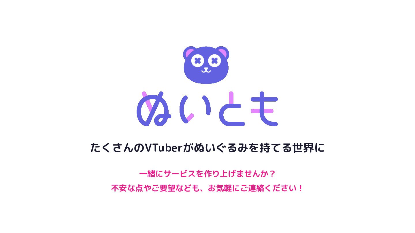 たくさんのVTuberがぬいぐるみを持てる世界に 一緒にサービスを作り上げませんか? 不安な点やご要望なども、お気軽にご連絡ください!