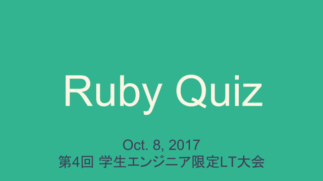 Ruby Quiz Oct. 8, 2017 第4回 学生エンジニア限定LT大会