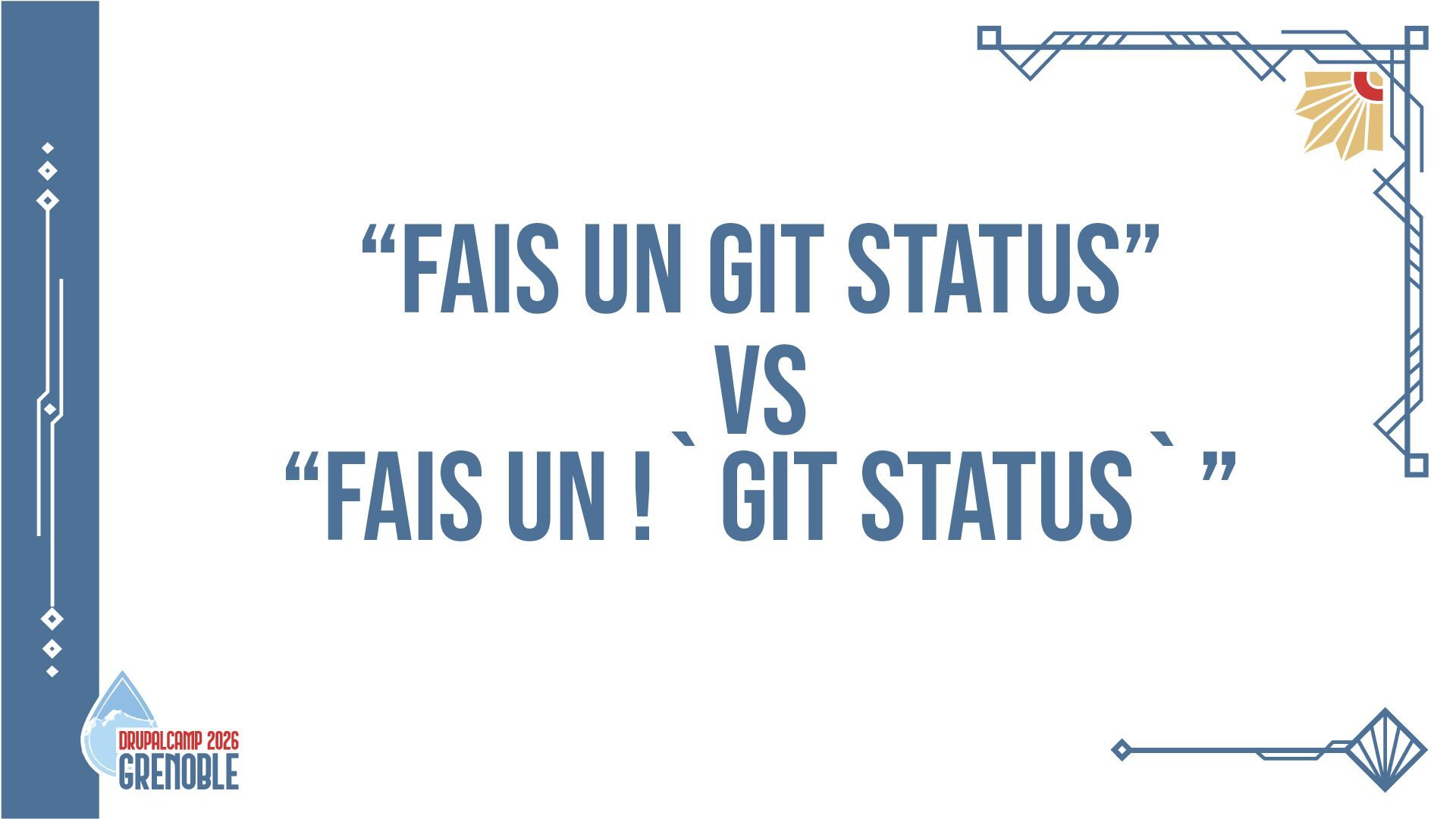 “Fais un GIT STATUS” vs “Fais un !`git status`”