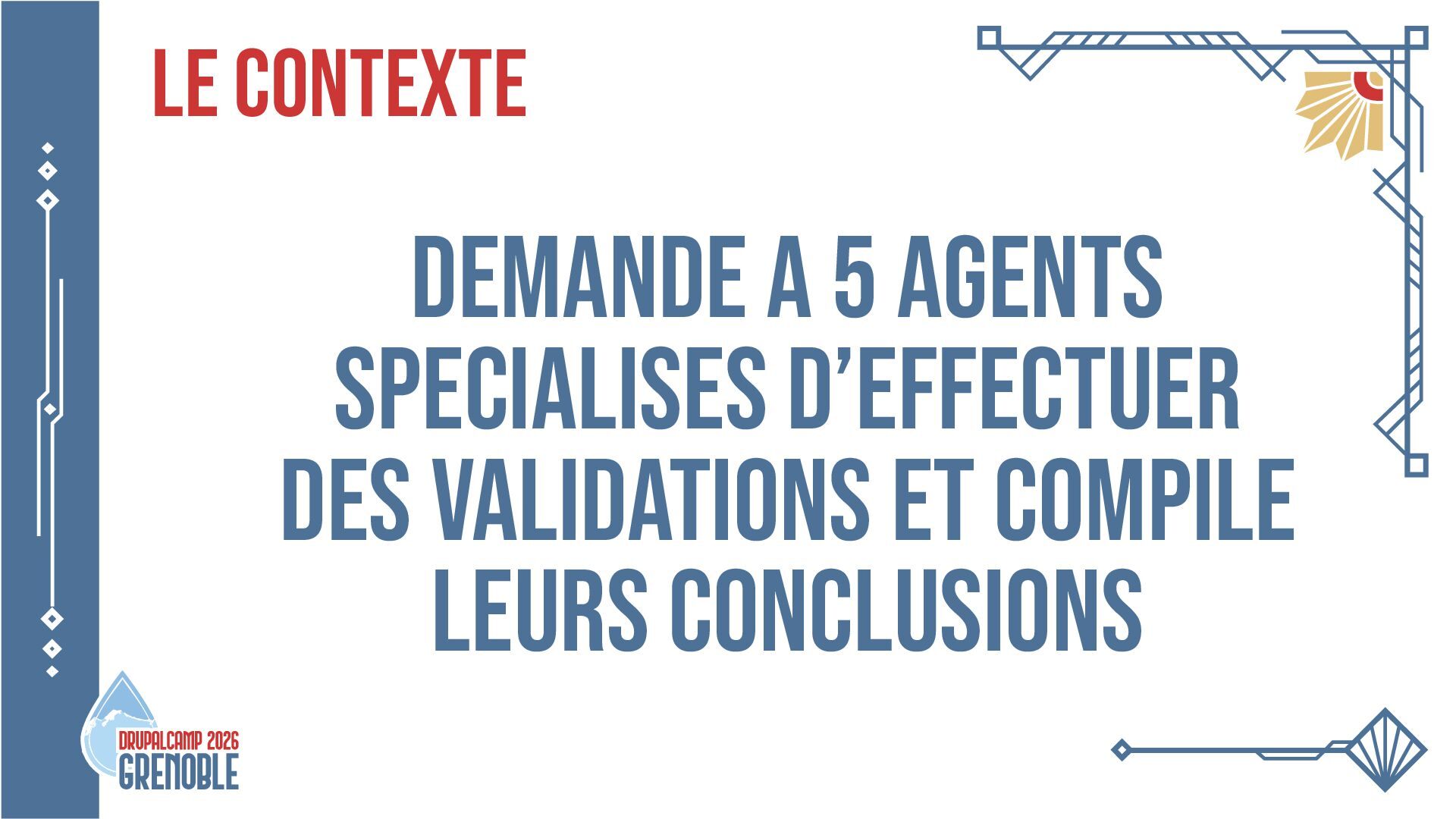 DEMANDE A 5 AGENTS SPECIALISES D’EFFECTUER DES VALIDATIONS ET COMPILE