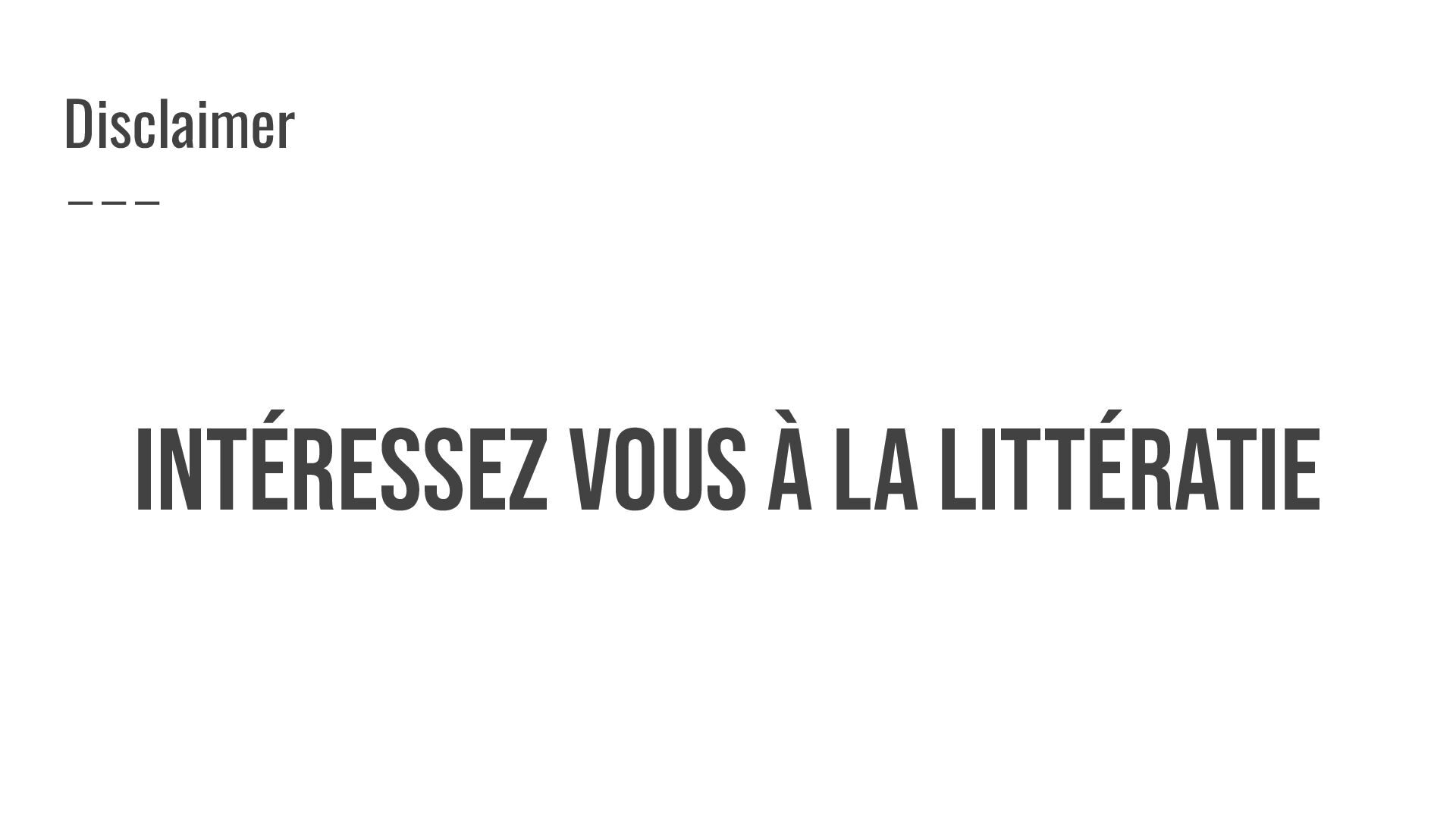 Intéressez vous à la littératie Disclaimer