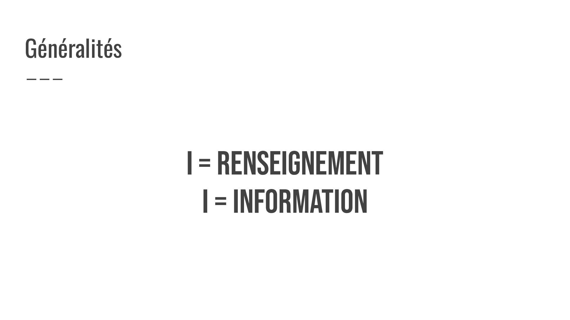 I = renseignement I = information Généralités