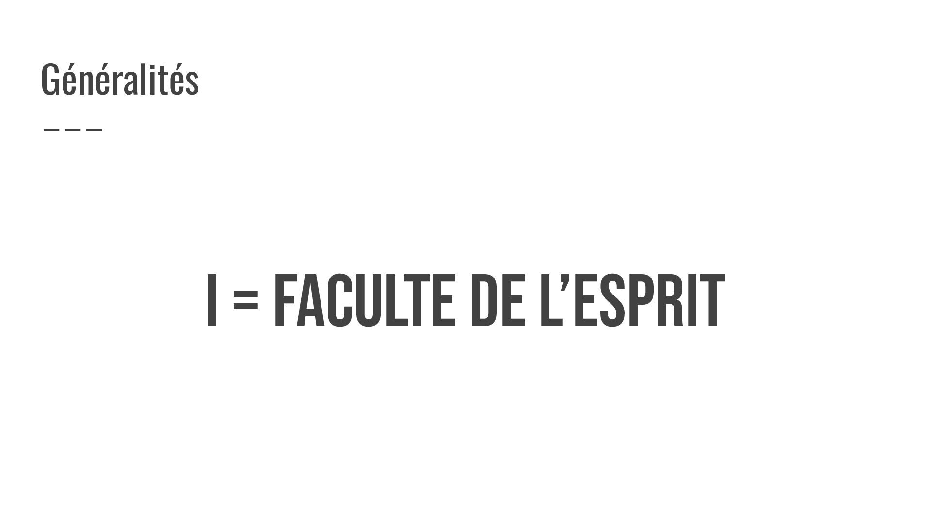 I = FACULTE DE L’ESPRIT Généralités