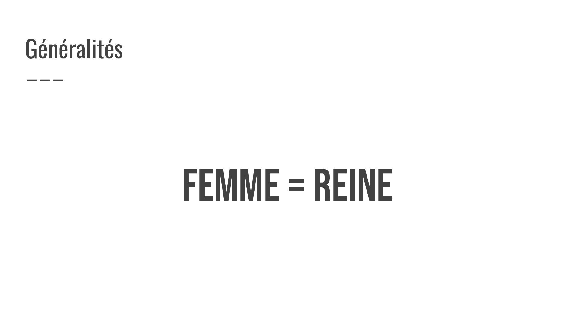 FEMME = REINE Généralités