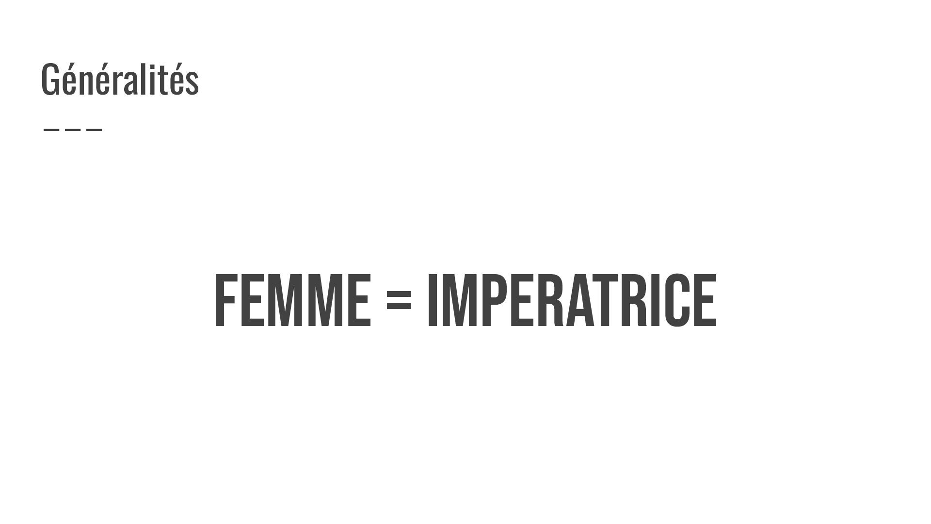 FEMME = IMPERATRICE Généralités