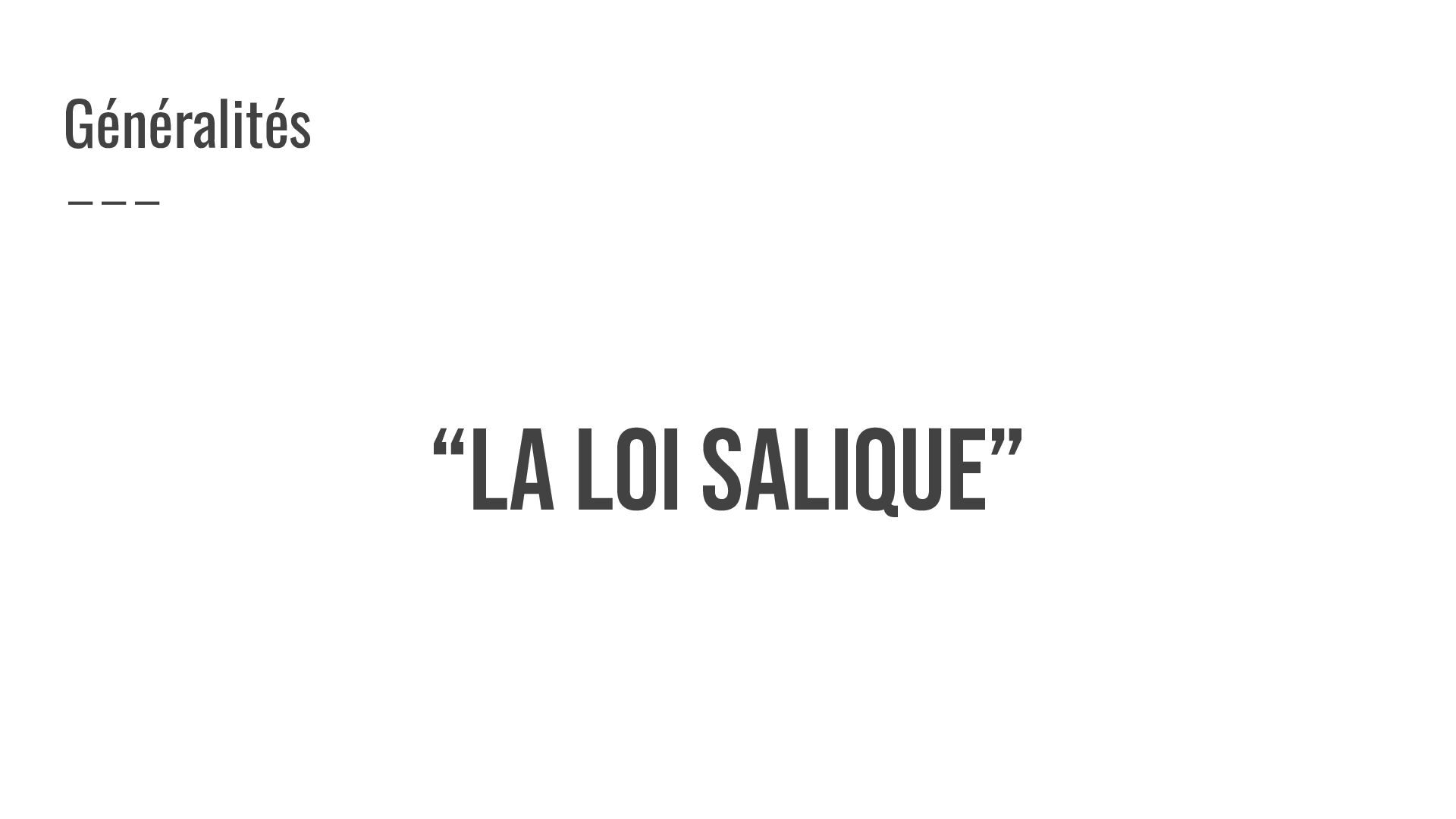 “La loi salique” Généralités