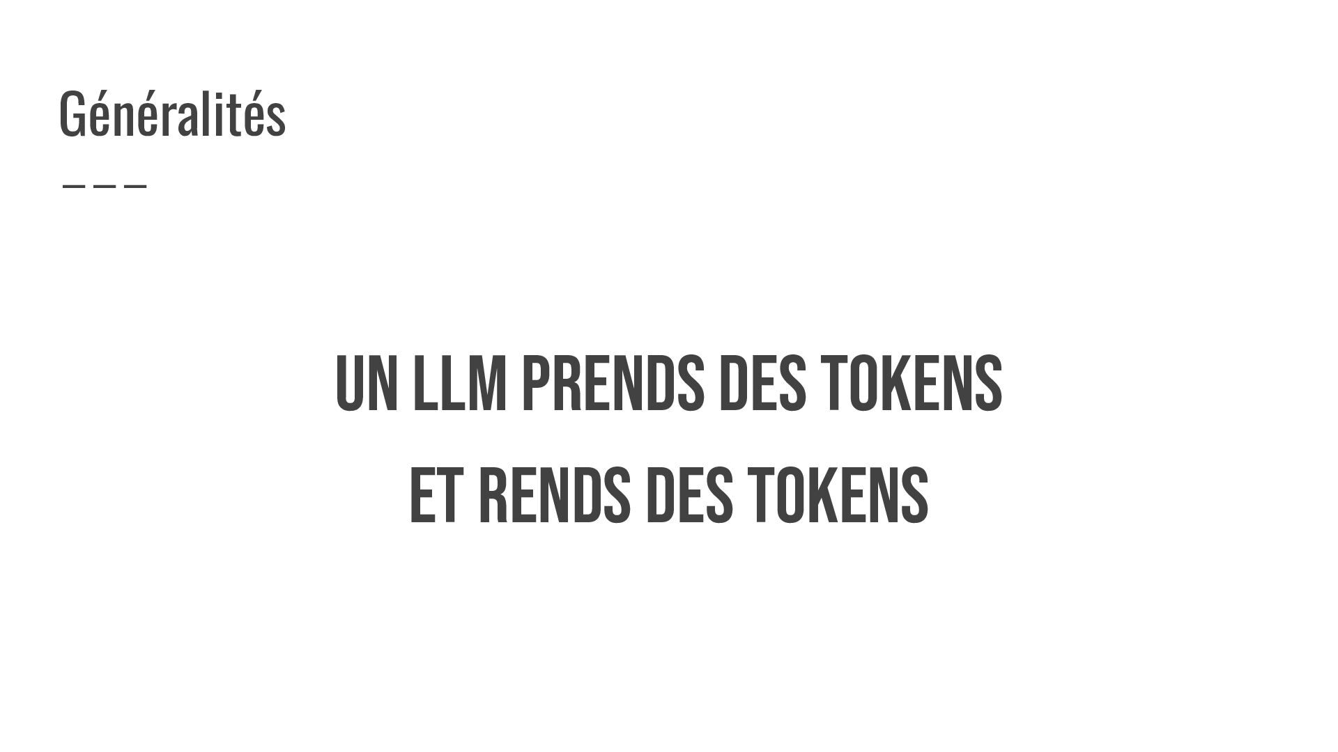 UN LLM prends dES TOKENS et rends dES TOKENS Généralités