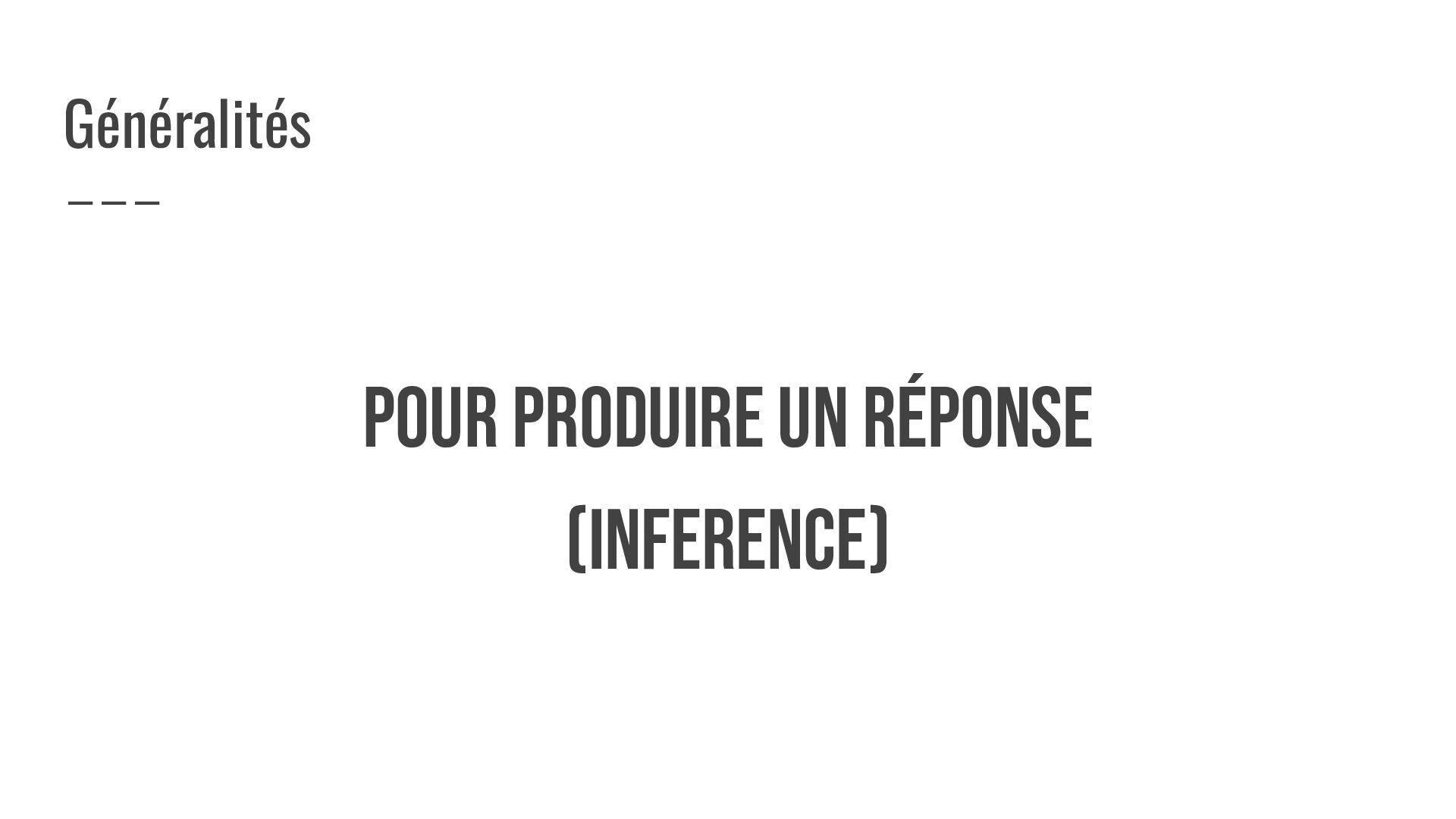 POUR PRODUIRE UN RéPONSE (INFERENCE) Généralités