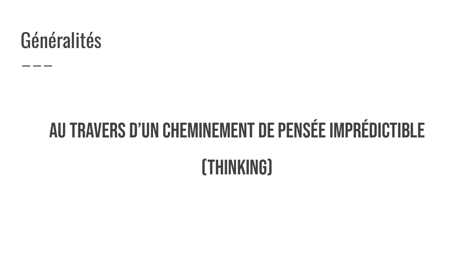 AU TRAVERS D’un CHEMINEMENT DE PENSéE IMPRÉDICTIBLE (thinking) Généralités
