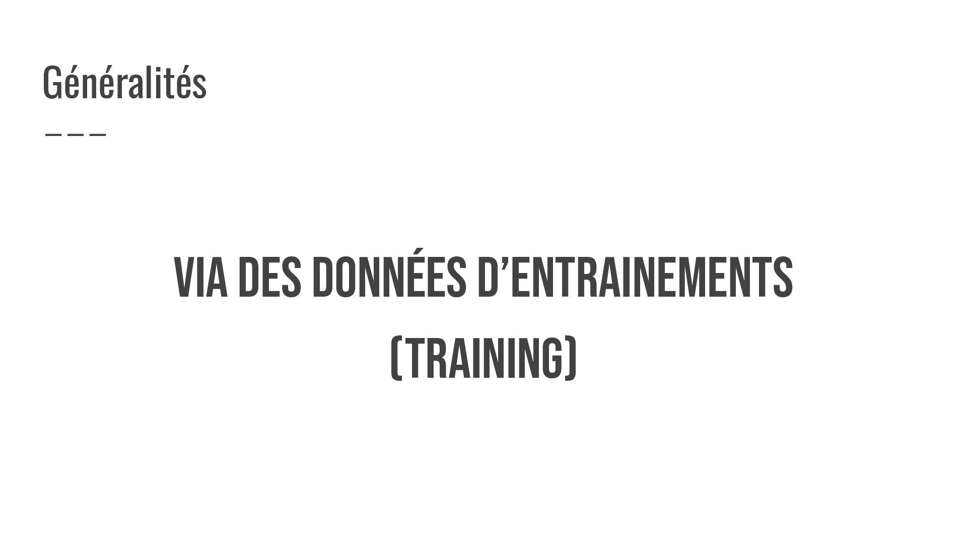 VIA DES DONNÉES D’ENTRAINEMENTS (training) Généralités