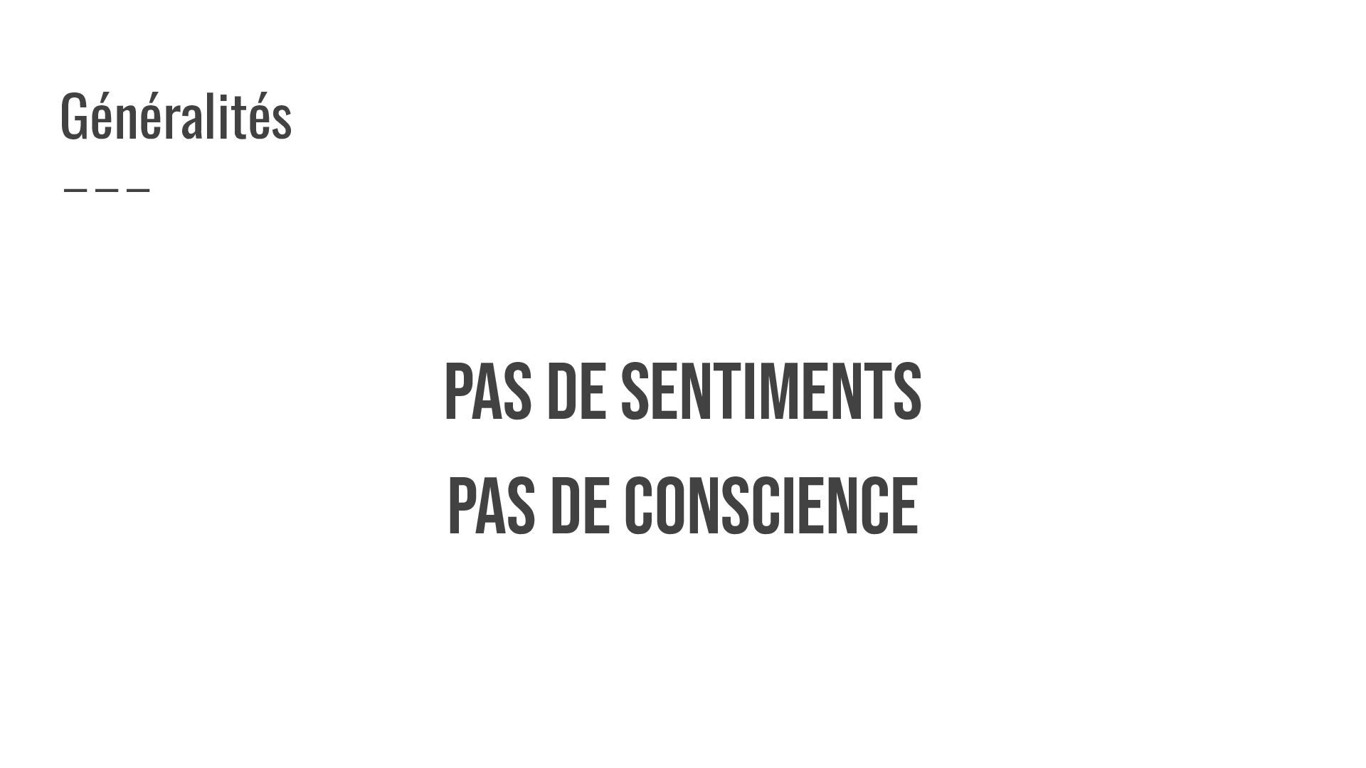 PAS DE SENTIMENTS PAS DE CONSCIENCE Généralités