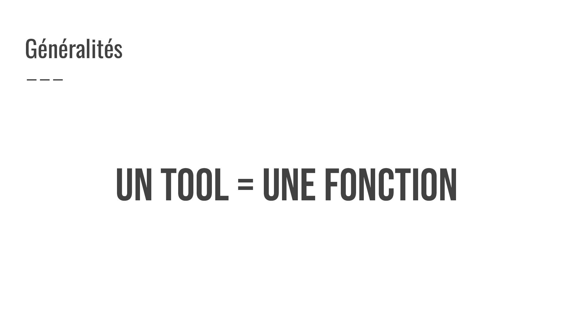 UN tool = UNE FONCTION Généralités