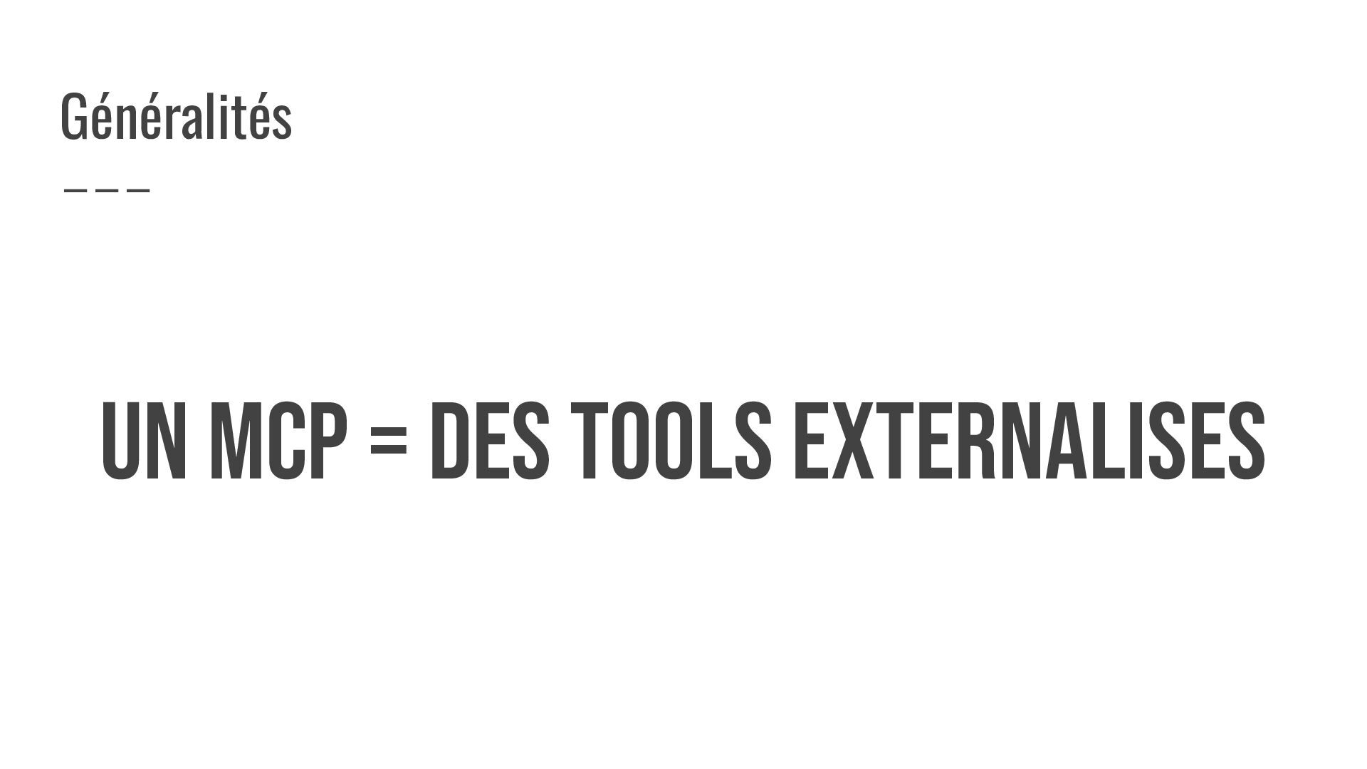 UN MCP = DES TOOLS EXTERNALISES Généralités
