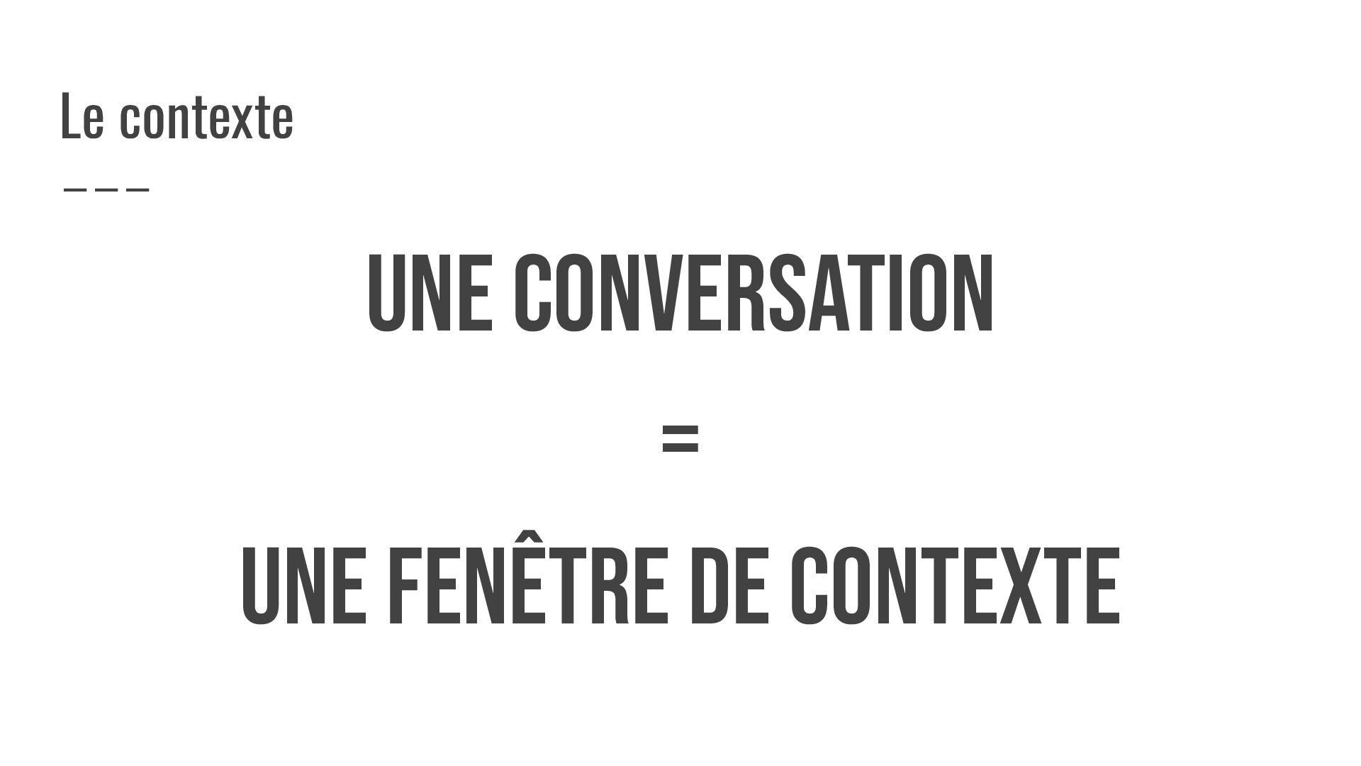 UNE CONVERSATION = UNE FENÊTRE DE CONTEXTE Le contexte