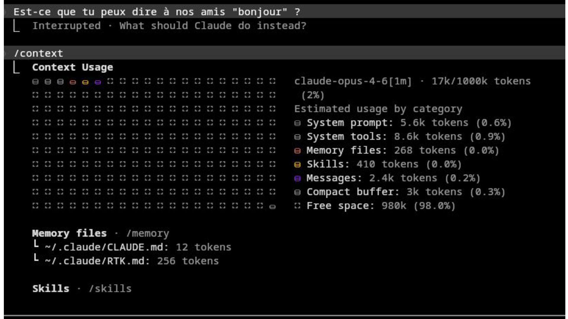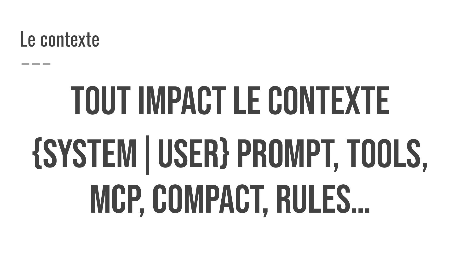 TOUT impact le contexte {SYSTEM|USER} prompt, TOOLS, MCP, COMPACT, RULES…