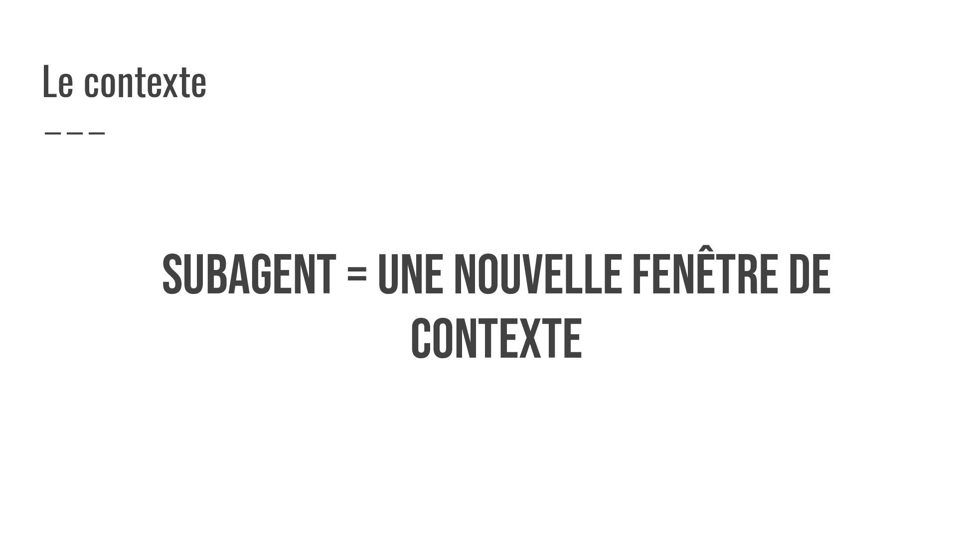 SUBAGENT = UNE NOUVELLE FENÊTRE DE CONTEXTE Le contexte