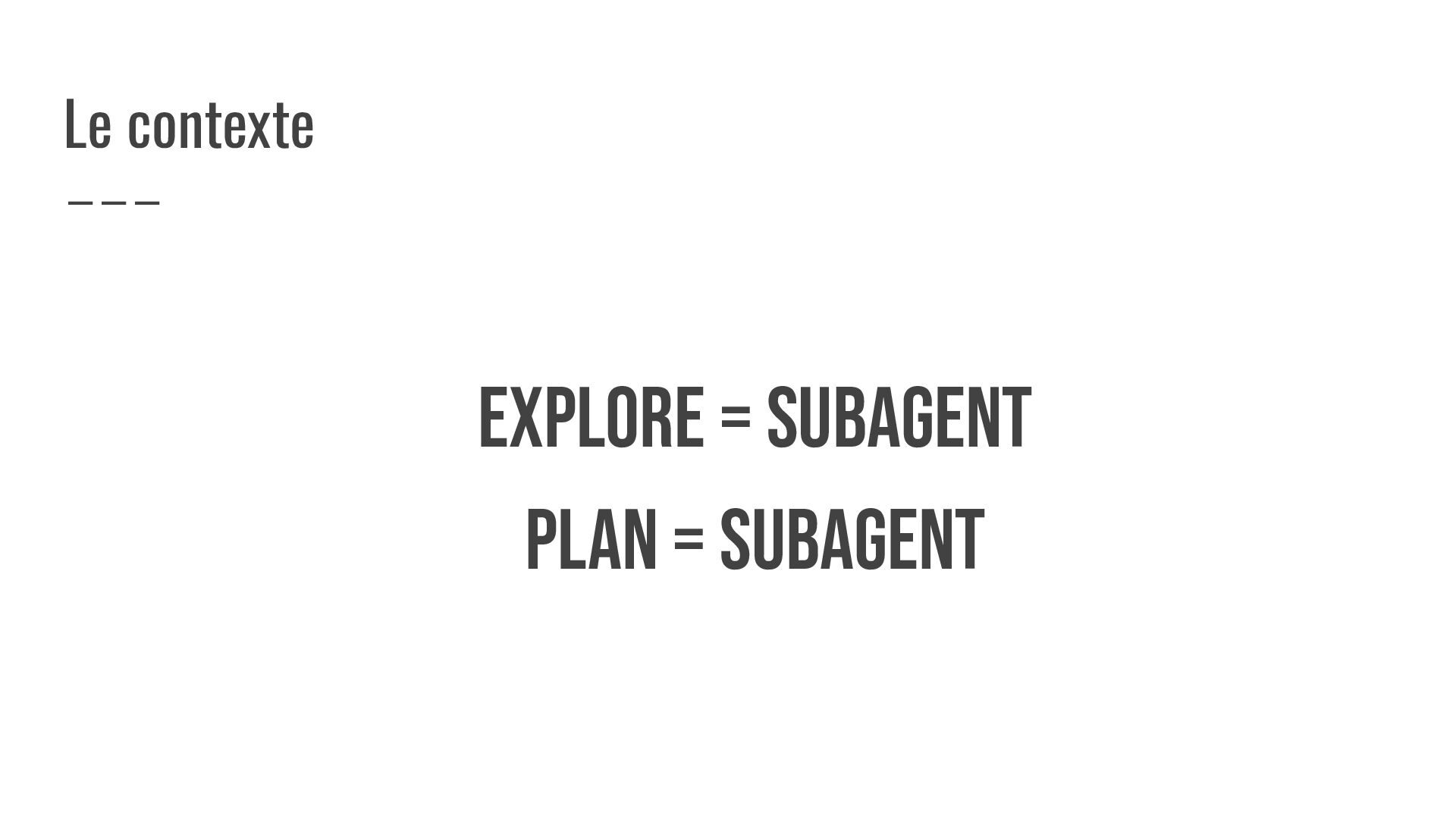 EXPLORE = SUBAGENT PLAN = SUBAGENT Le contexte