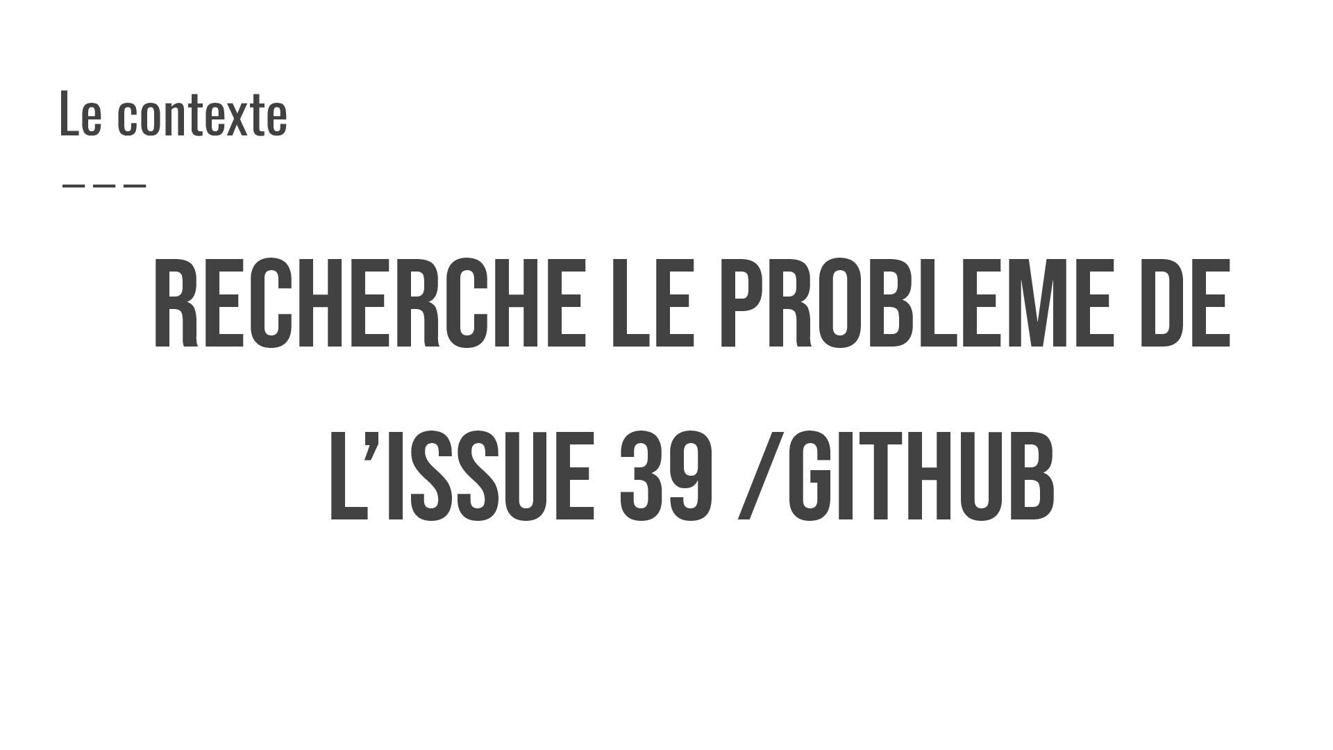 RECHERCHE LE PROBLEME DE L’ISSUE 39 /GITHUB Le contexte