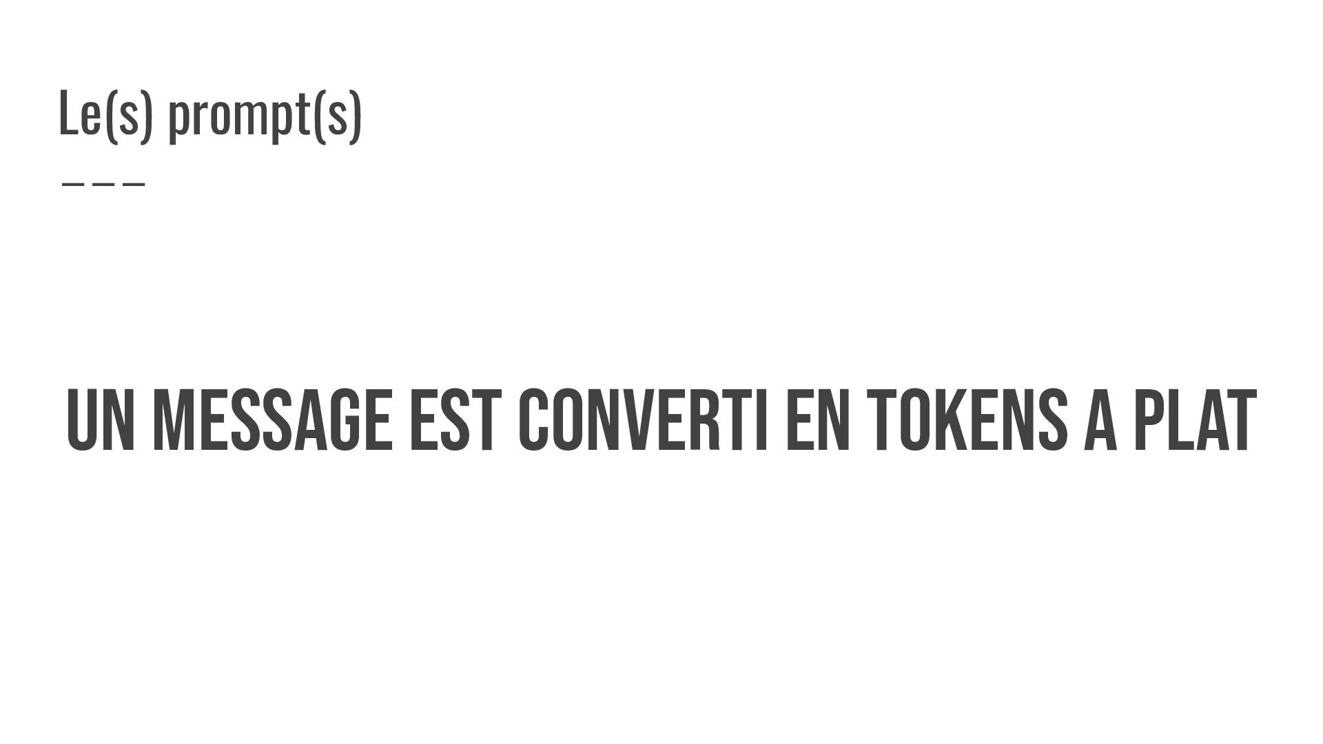 UN MESSAGE EST Converti en tokens A PLAT Le(s) prompt(s)