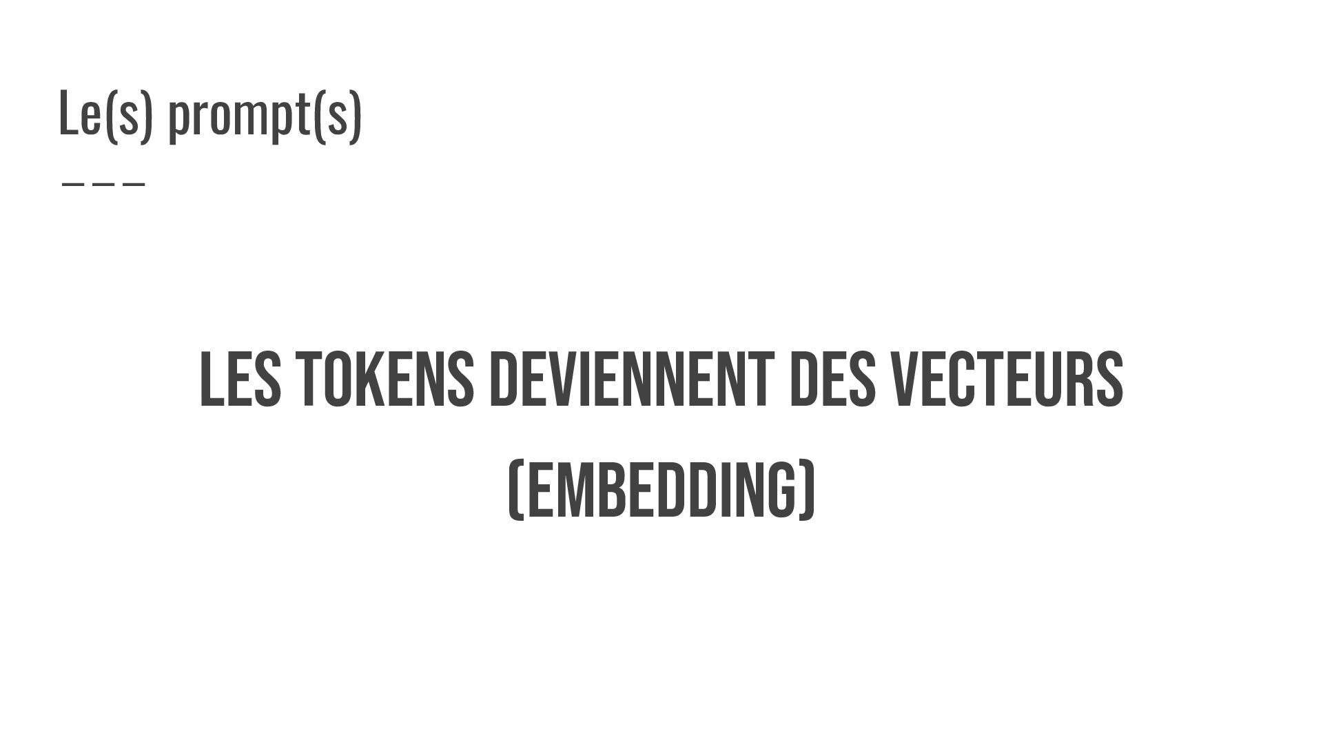 LES TOKENS DEVIENNENT DES VECTEURS (embedding) Le(s) prompt(s)