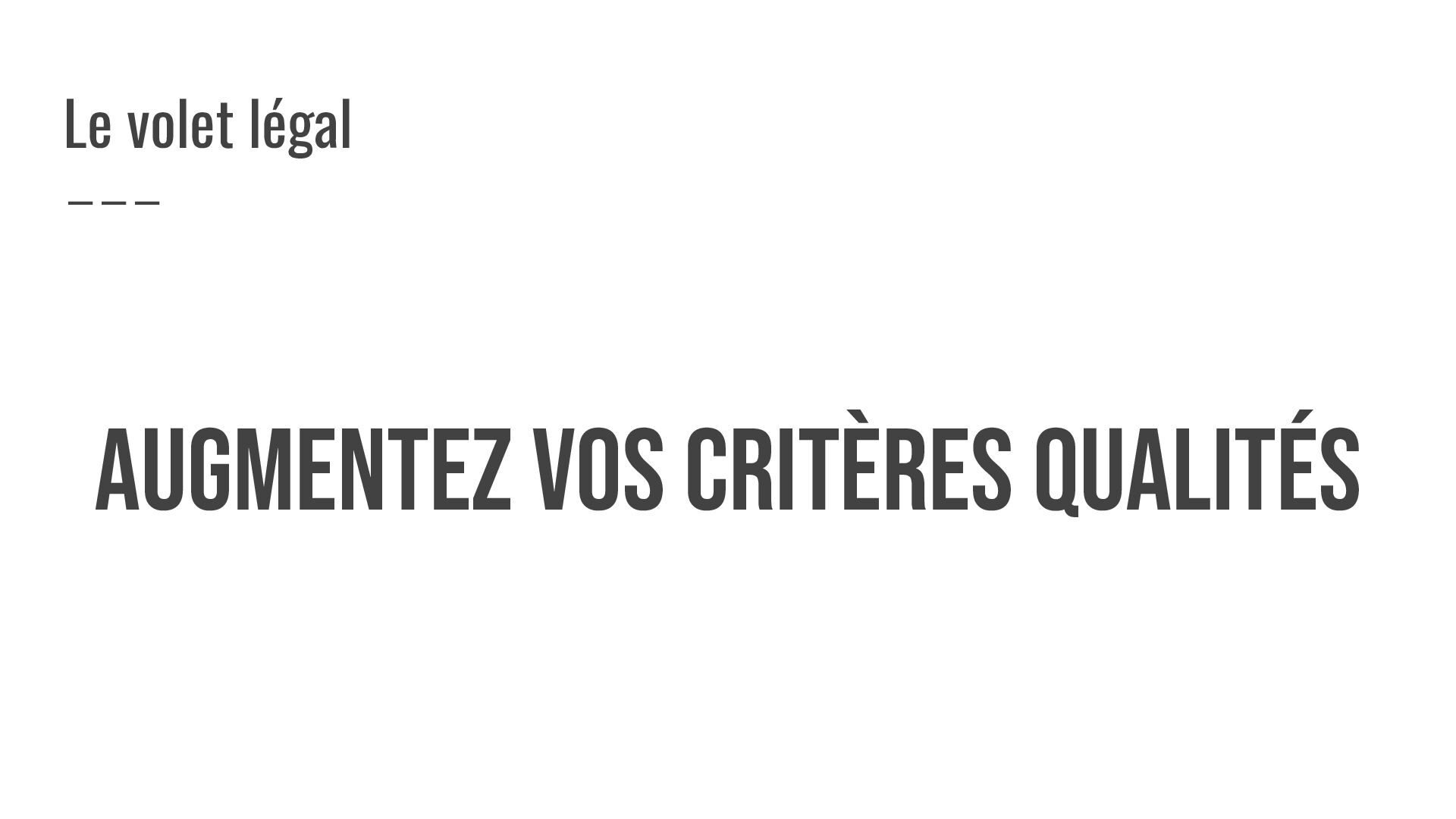 AUGMENTEZ VOS CRITèRES QUALITéS Le volet légal
