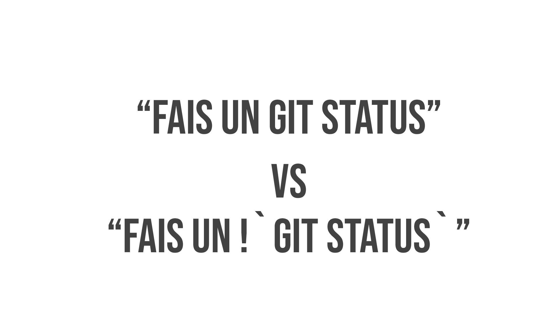 “Fais un GIT STATUS” vs “Fais un !`git status`”