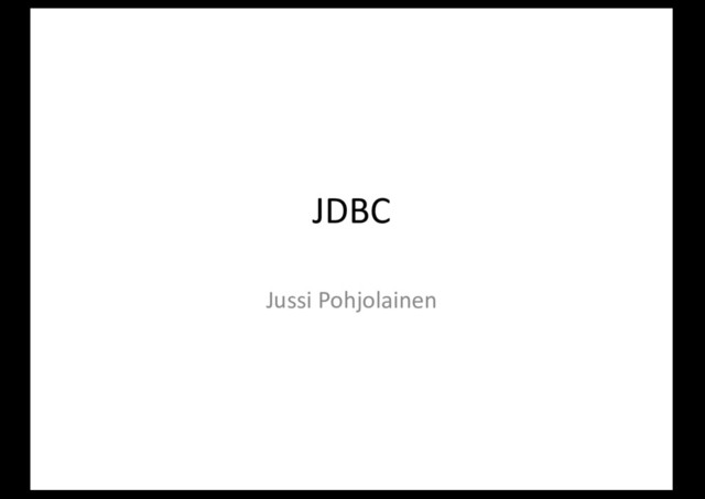 only, no updatable result sets • JDBC 2.0 – Scrollable an updatable result sets • JDBC 3.0 was included in J2SE 1.4 – More metadata, named parameters in callable statements, some new datatypes • JDBC 4.0, Java SE 6 – Easier driver loading, RowSet for offline use, XML-support – JDBC 4.1, Java SE 7 – JDBC 4.2, Java SE 8