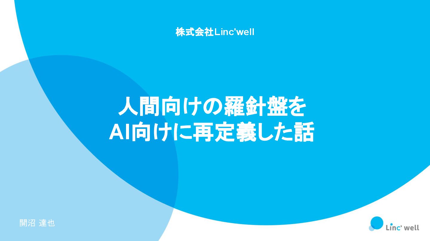 1 ©Linc' well inc. 株式会社Linc'well 人間向けの羅針盤を AI向けに再定義した話 開沼 達也