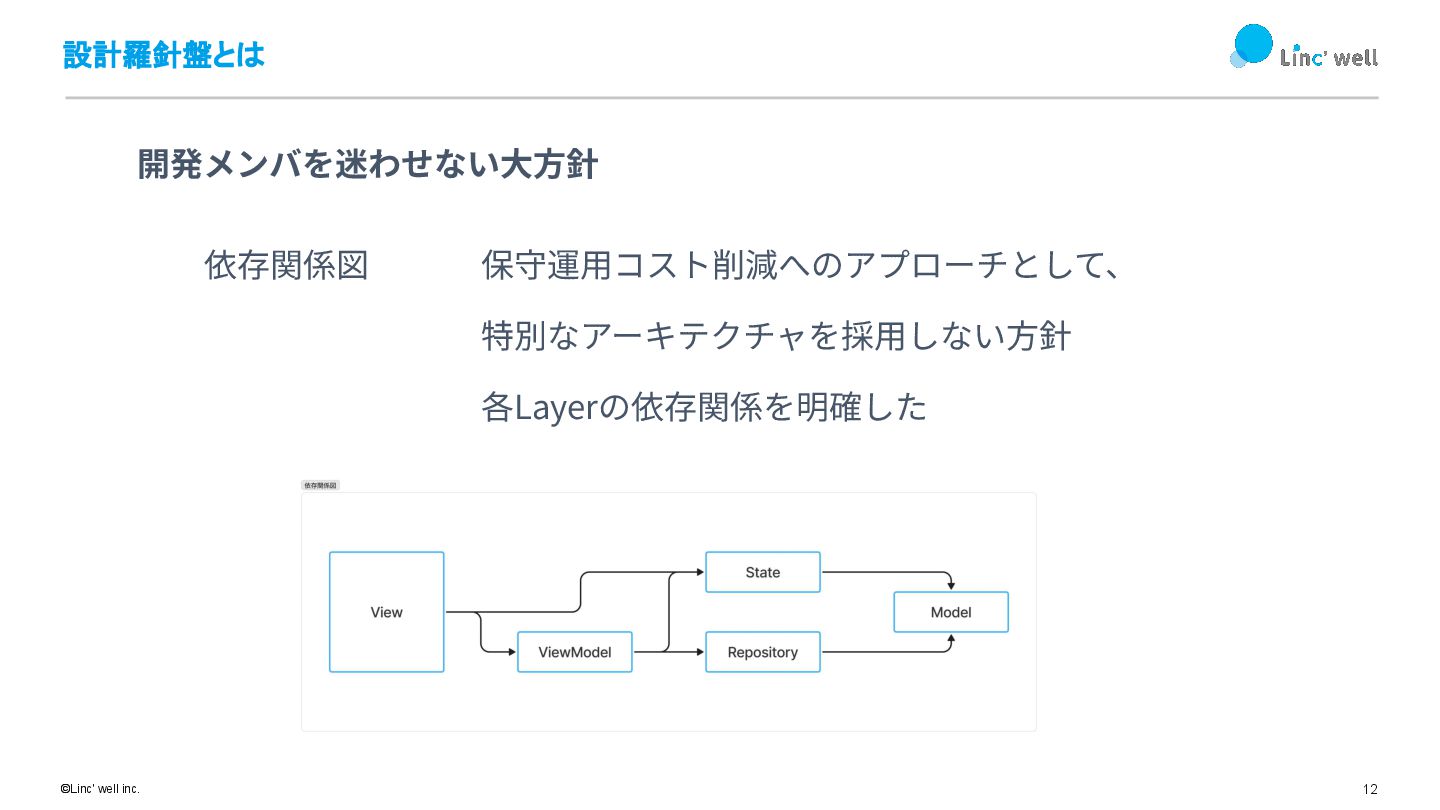11 ©Linc' well inc. 設計羅針盤とは 2023年 アプリローンチと同年に施⾏ 「設計羅針盤」とは、アプリの設計に関する指針をまとめたドキュメント