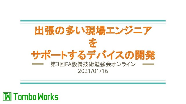 出張の多い現場エンジニア を サポートするデバイスの開発 第3回FA設備技術勉強会オンライン 2021/01/16